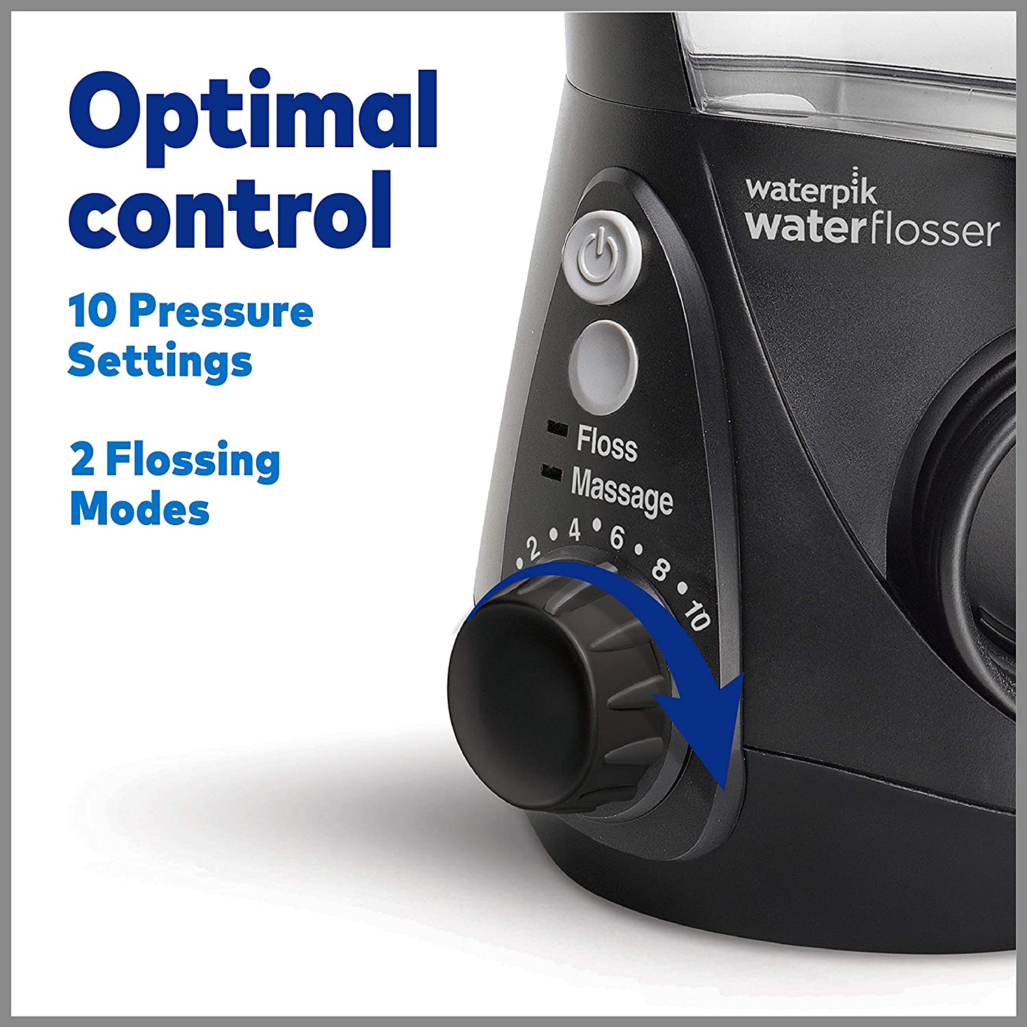 ADVANCED WATER FLOSSING: Aquarius is a performance water flosser model featuring enhanced pressure with 10 settings for a custom clean, massage mode for gum stimulation, plus a built-in timer/pacer pauses briefly at 30 secs and 1 min to help track flossing time.