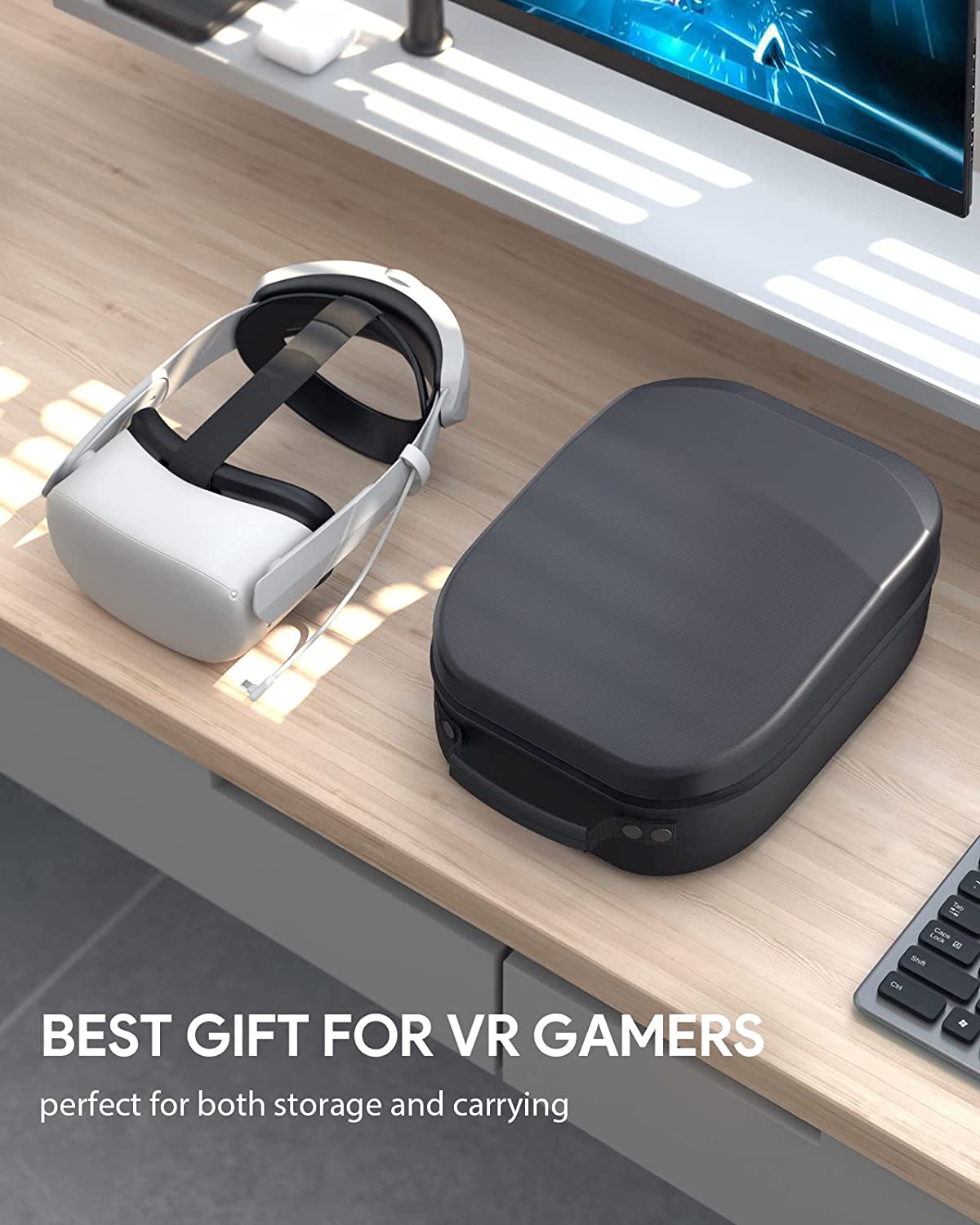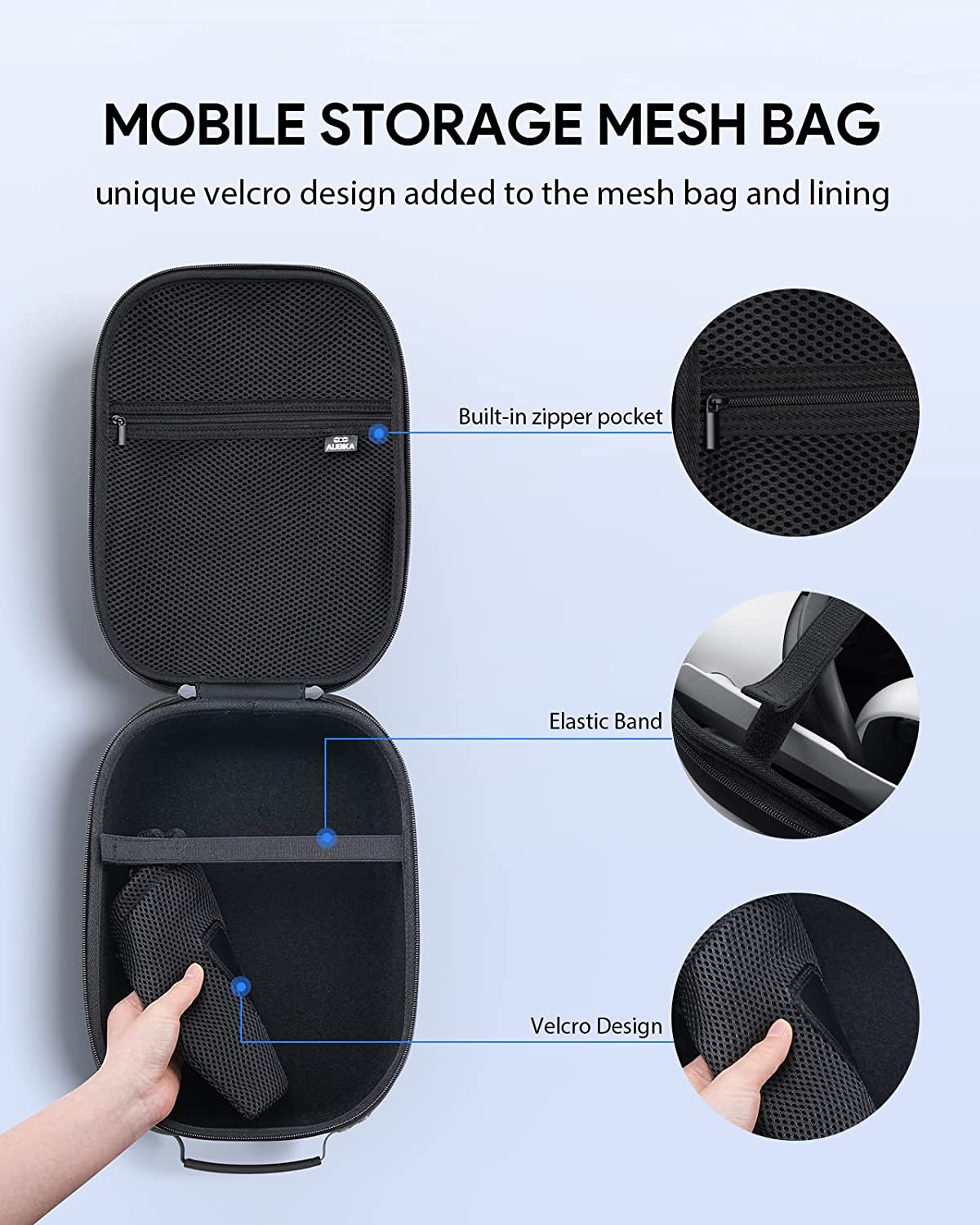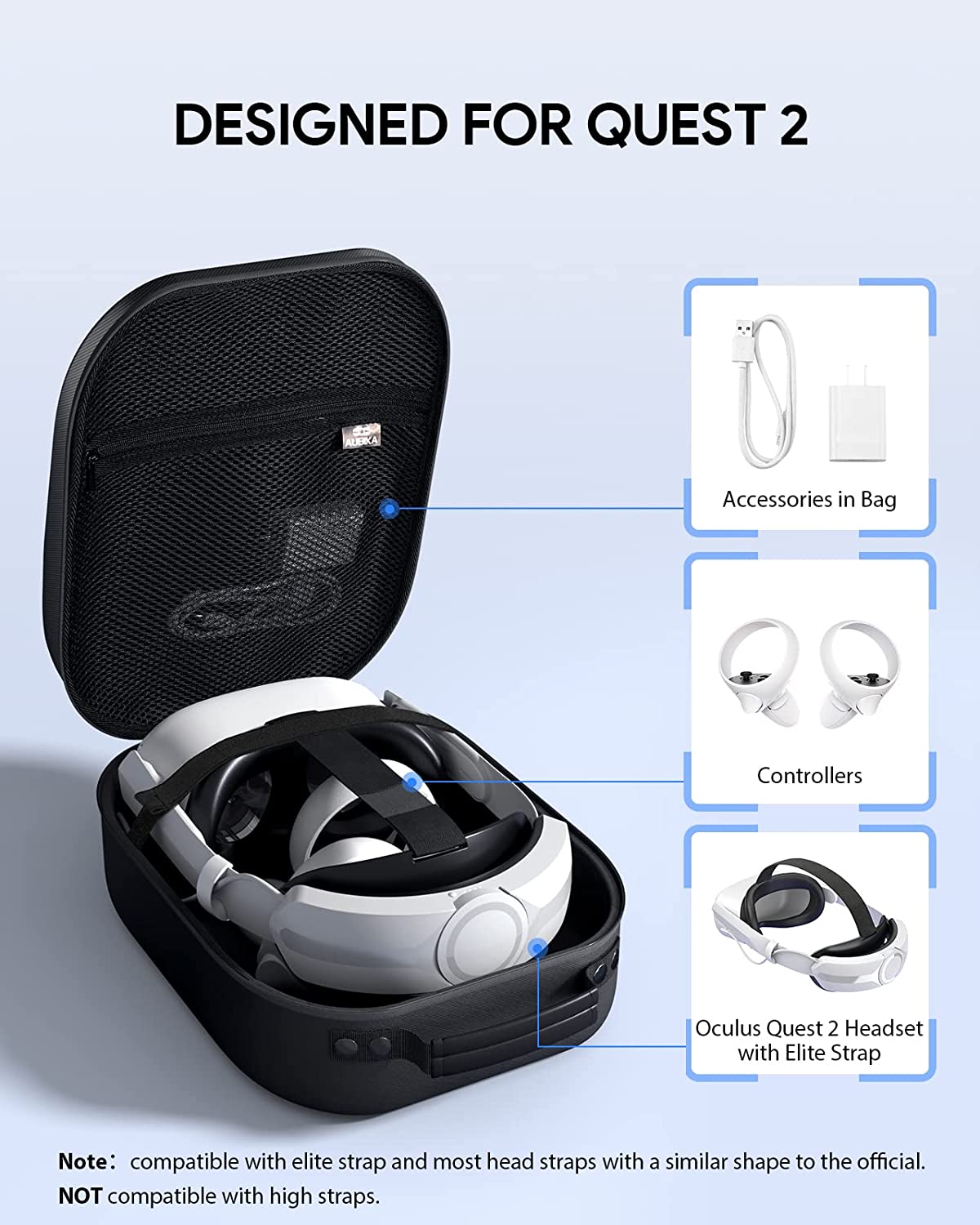 • ☑️Reliable Service - If there is any quality problem, we will give you a 100% refund. Packaging includes 1 Oculus Quest2 storage case*, 1 lens protection cover*, 1 mobile storage mesh bag*, and 2 velcros*.