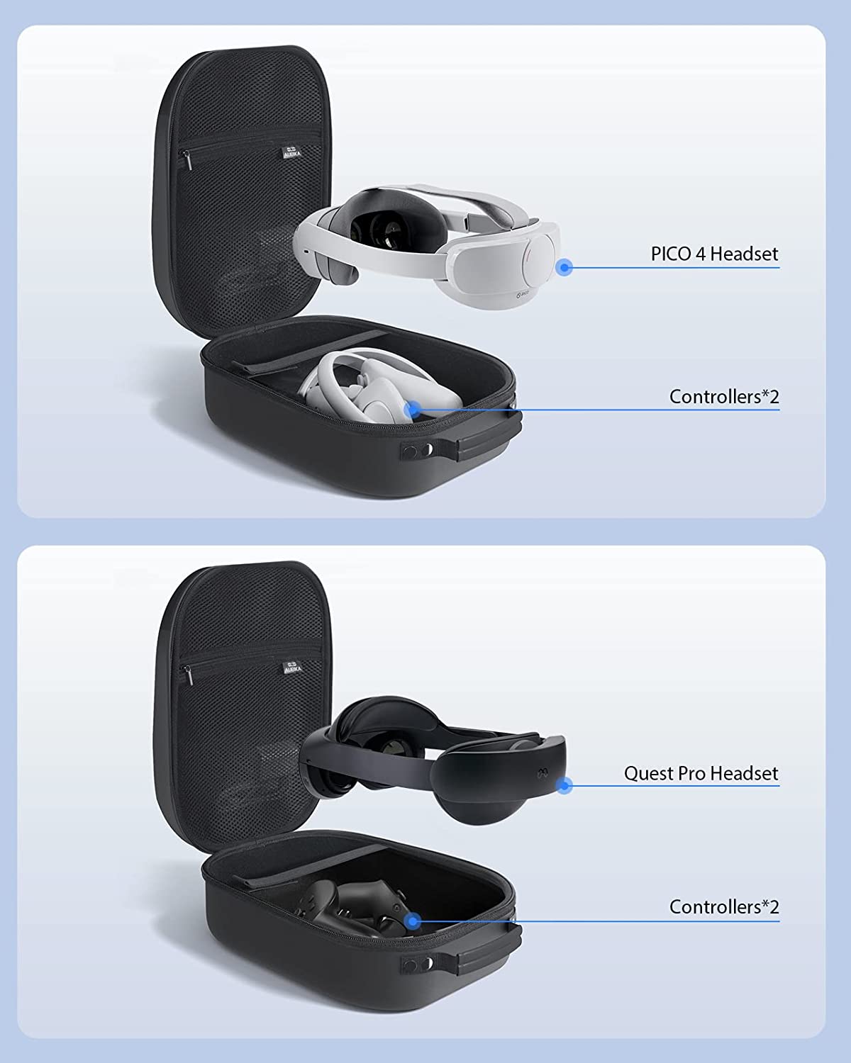 • ☑️1:1 Customisation - This hard case is customized specifically for the Oculus/Meta Quest 2(?and the latest PICO 4?). It can hold the head strap (or head strap with battery), controllers, cables, and power adapter altogether. (Dimensions: 31.00 x 22.00 x 13.50 cm Weight: 534 g)