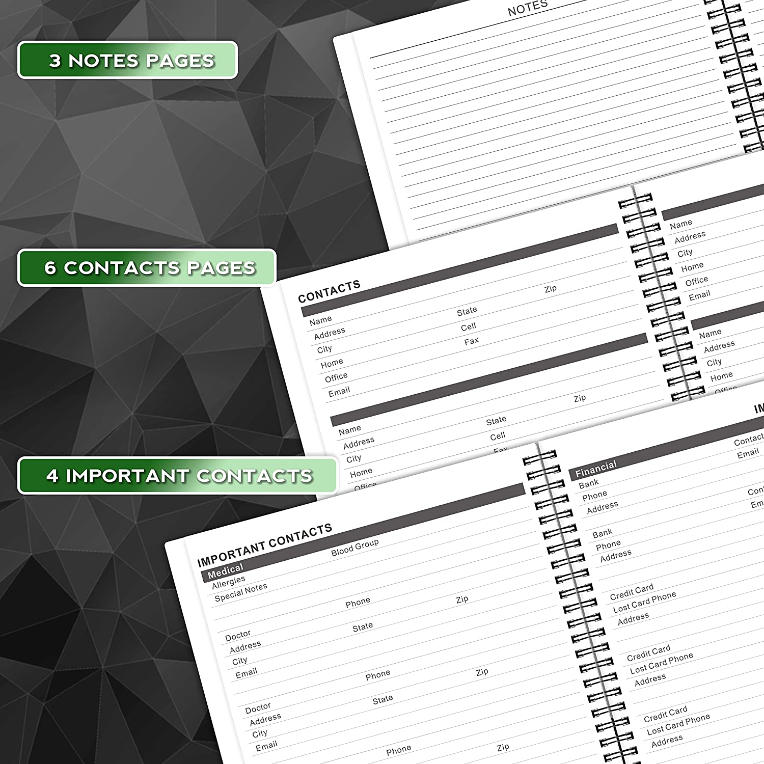 • ? Specialties of Monthly Planner - 9" x 11" Monthly Calendar Planner Pages | Important Contacts Pages | Two-year Monthly Calendar Pages | Contacts Pages | Passwords | Notes pages | Yearly Overview | Holidays | Thicker Paper | Cardboard Cover | Reference Information