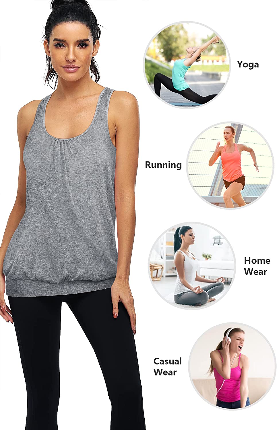 BLEVONH Womens Yoga Shirts Banded Bottom Loose Fit Workout Racerback Tank Tops