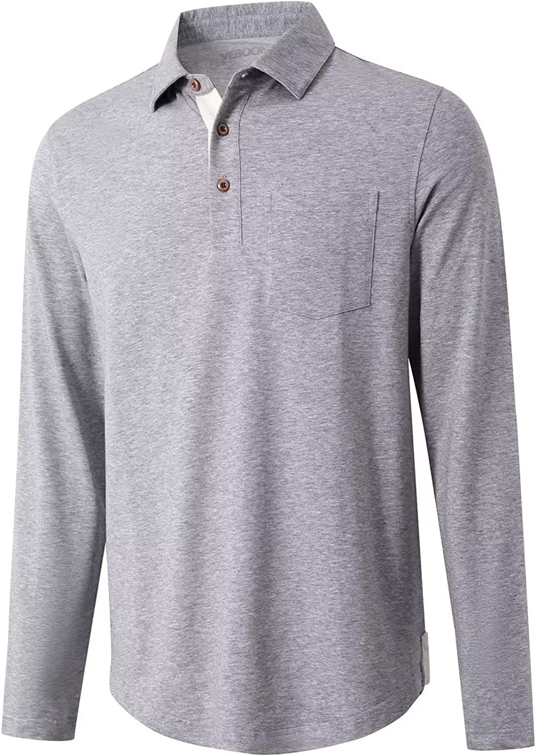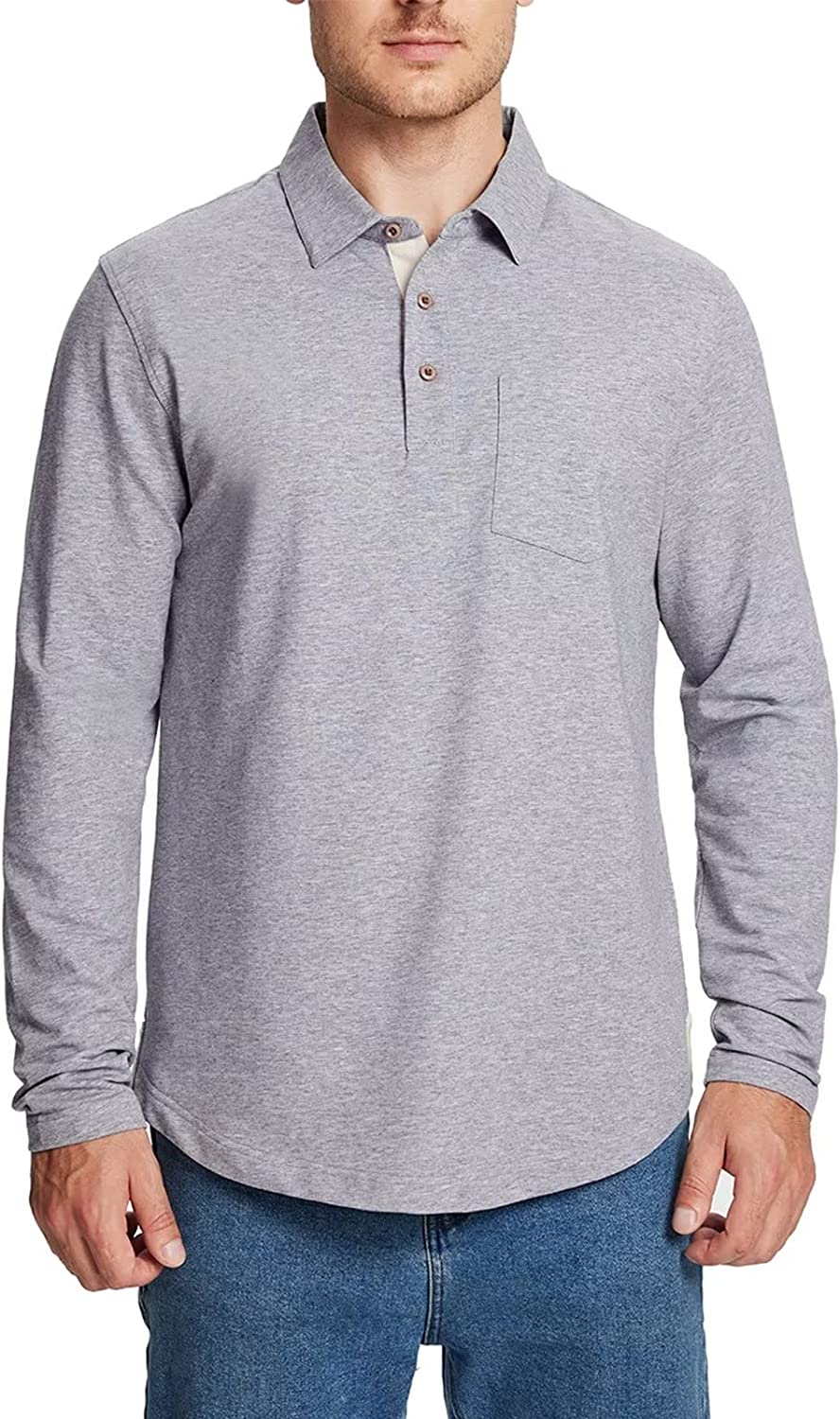 WARM TIPS: This long sleeve polo shirts for men, the model is 5'11"height, 172lbs wearing a size medium for reference. Please refer to the size chart in product image or description before you order it.
