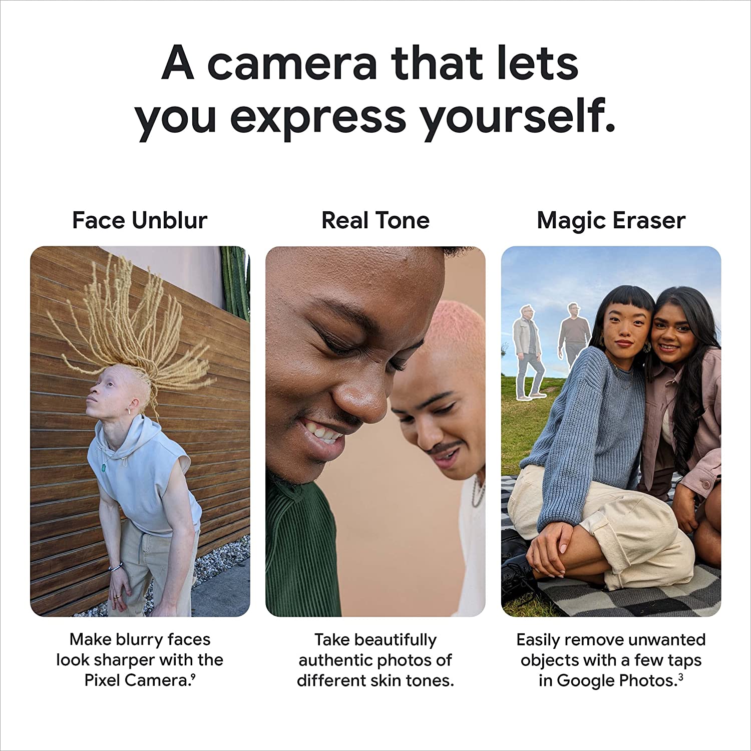 • Take amazing photos with Pixel’s 12 megapixel camera and tools like Magic Eraser[3], Motion Mode, and Portrait Mode