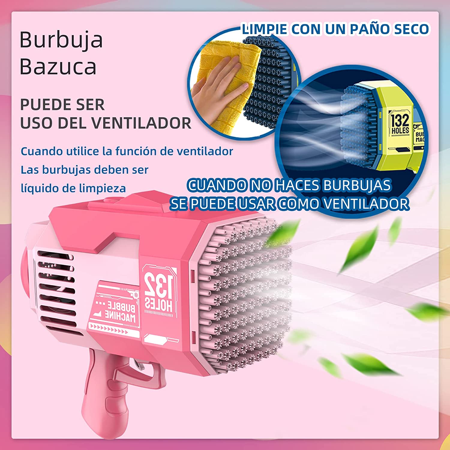 • 【Safety Cooling Fan】- When children get tired of chasing bubbles, they can use the bubble gun as a small fan to bring cool and comfortable wind. This way, they won't feel too hot while playing.