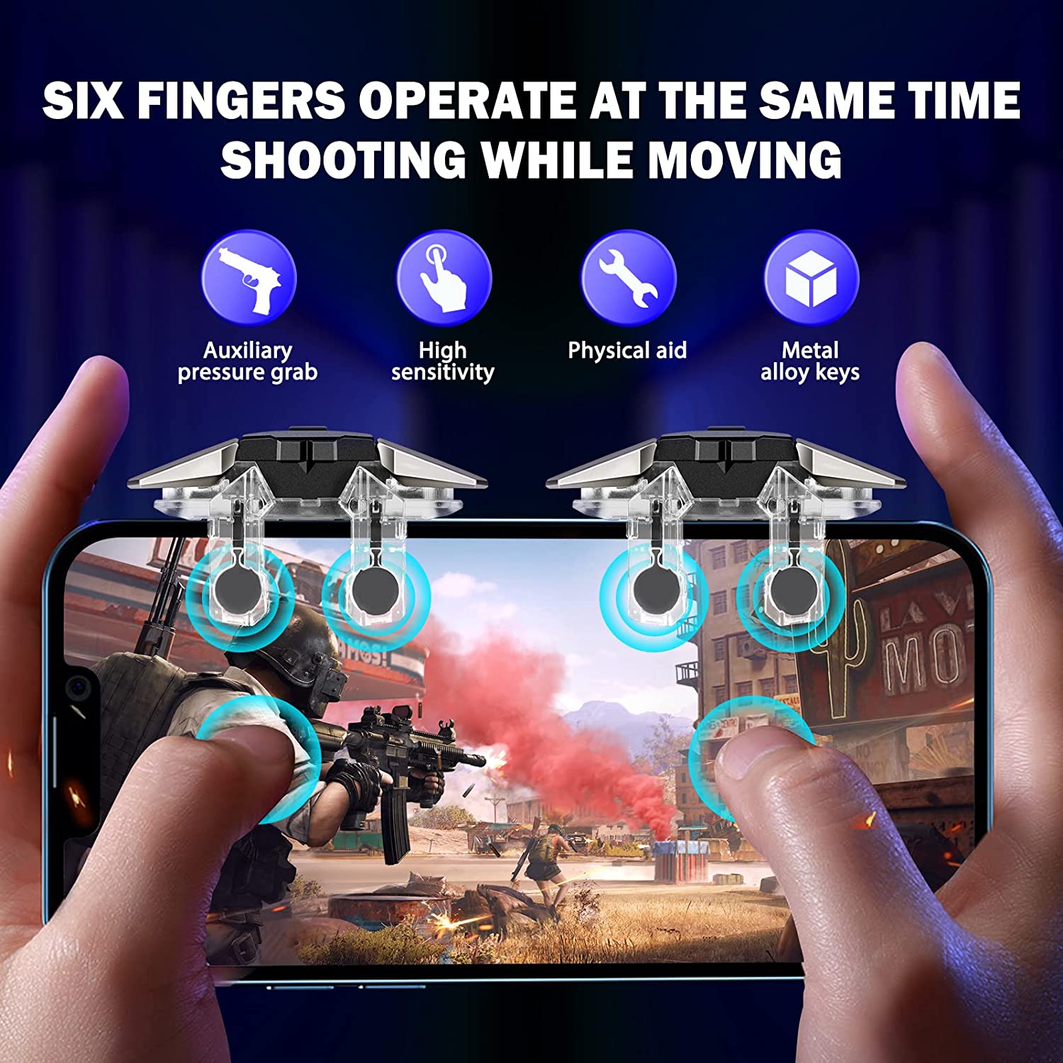 2022 New Model Mobile Game Controller Trigger, Mobile Game Accessories 6 Finger Trigger Sensitive Shoot and Target Buttons Smartphone Game Controller Gamepad for PUBG/Survival Rules/Knives Out