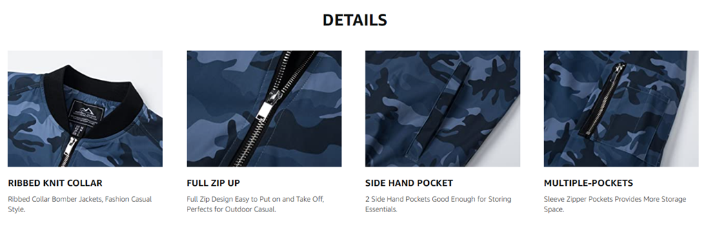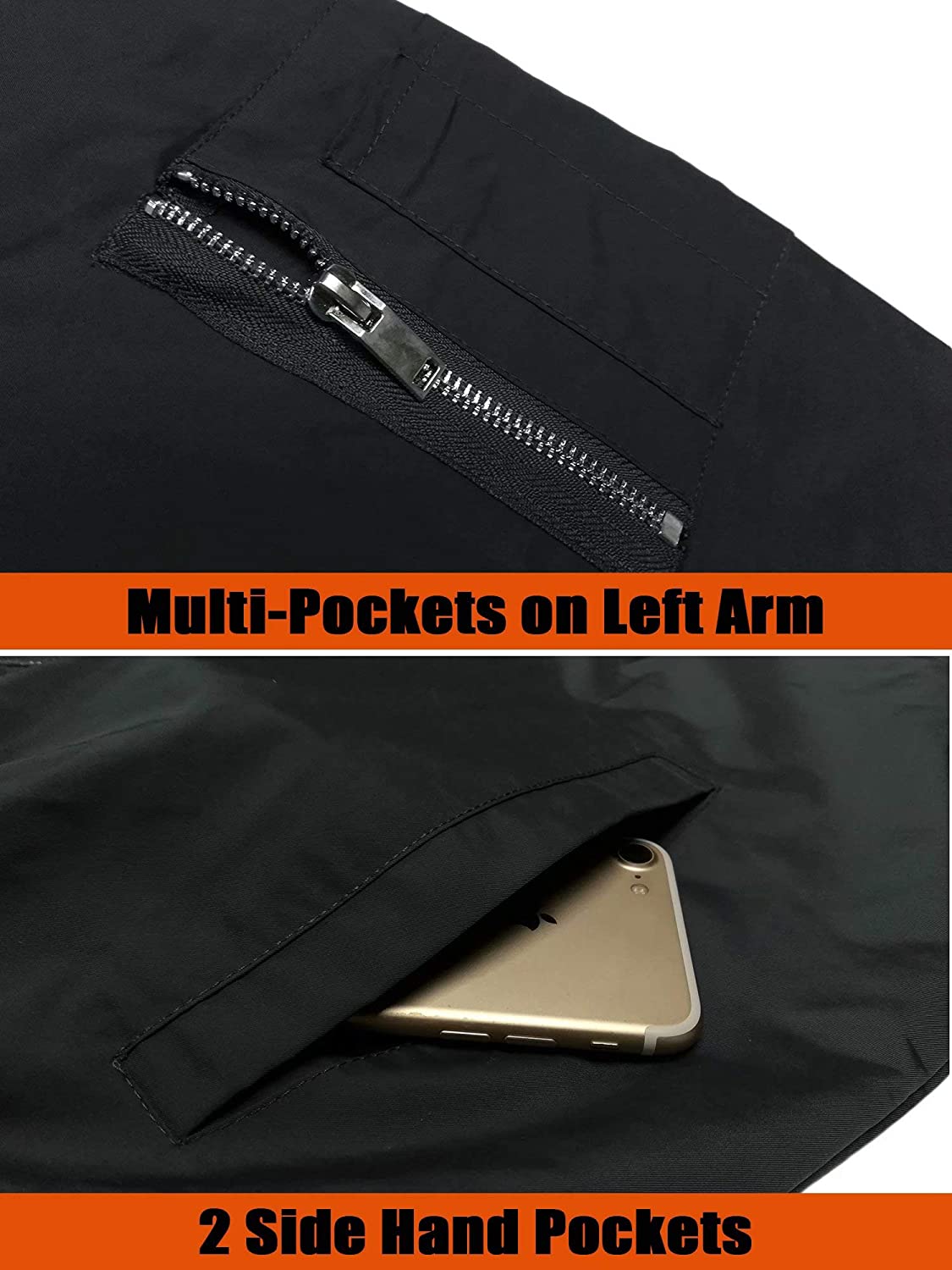 • Multi-Pockets: 2 side hand pockets,1 zippered pocket, 2 utility pockets on left sleeve and 1 deep inner pocket.