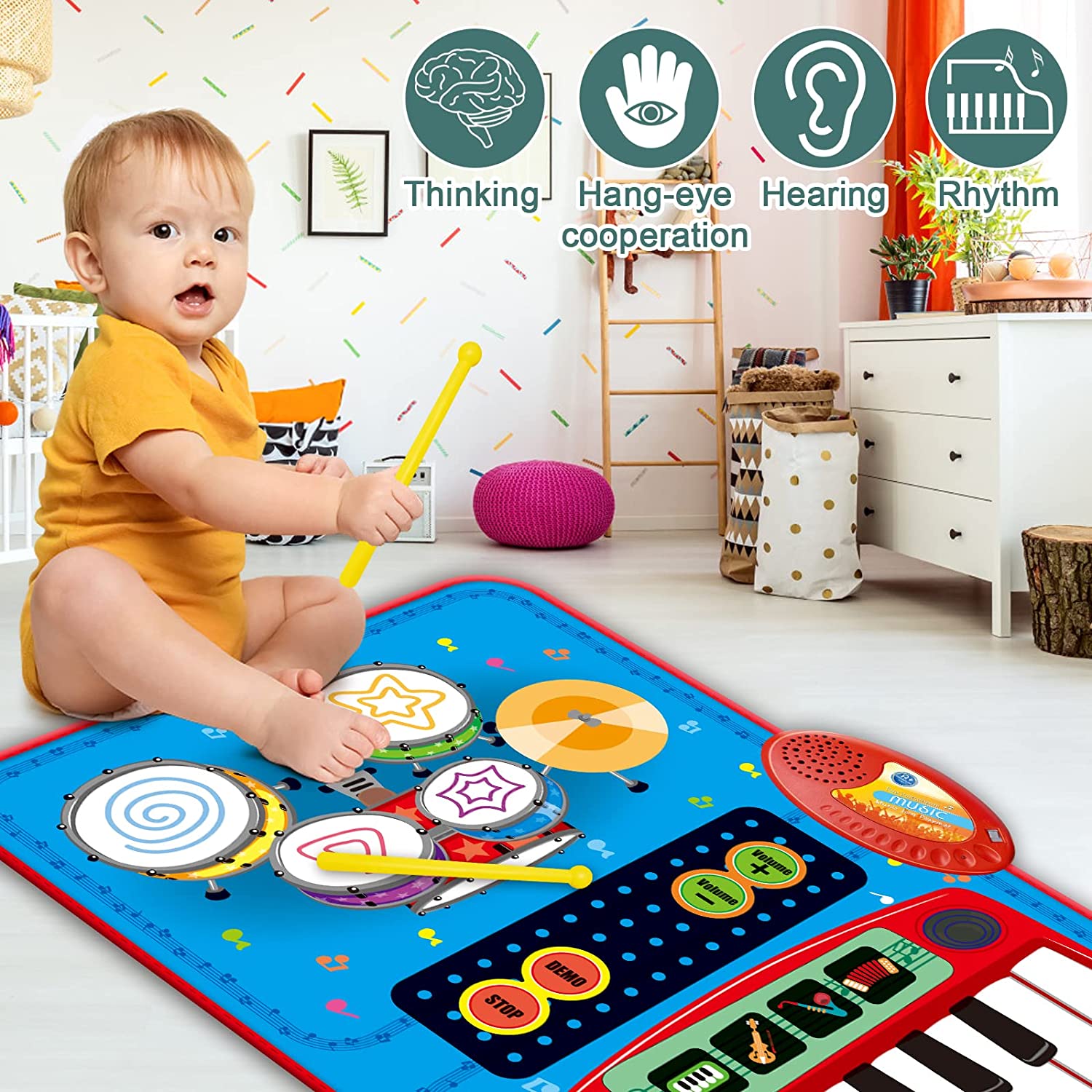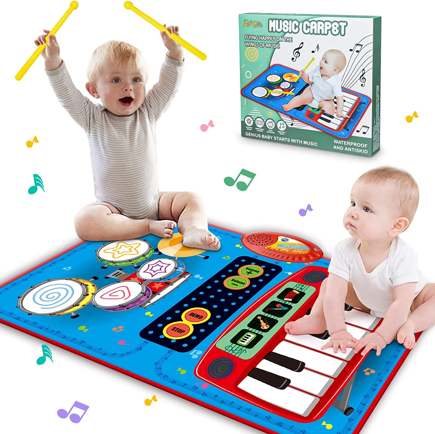 PRAGYM Baby Toys for 1 Year Old Boys & Girls, 2 in 1 Musical Toys, Toddler Piano & Drum Mat with 2 Sticks, Learning Floor Blanket, Birthday Gifts for 1 2 3 Year Old Boys & Girls