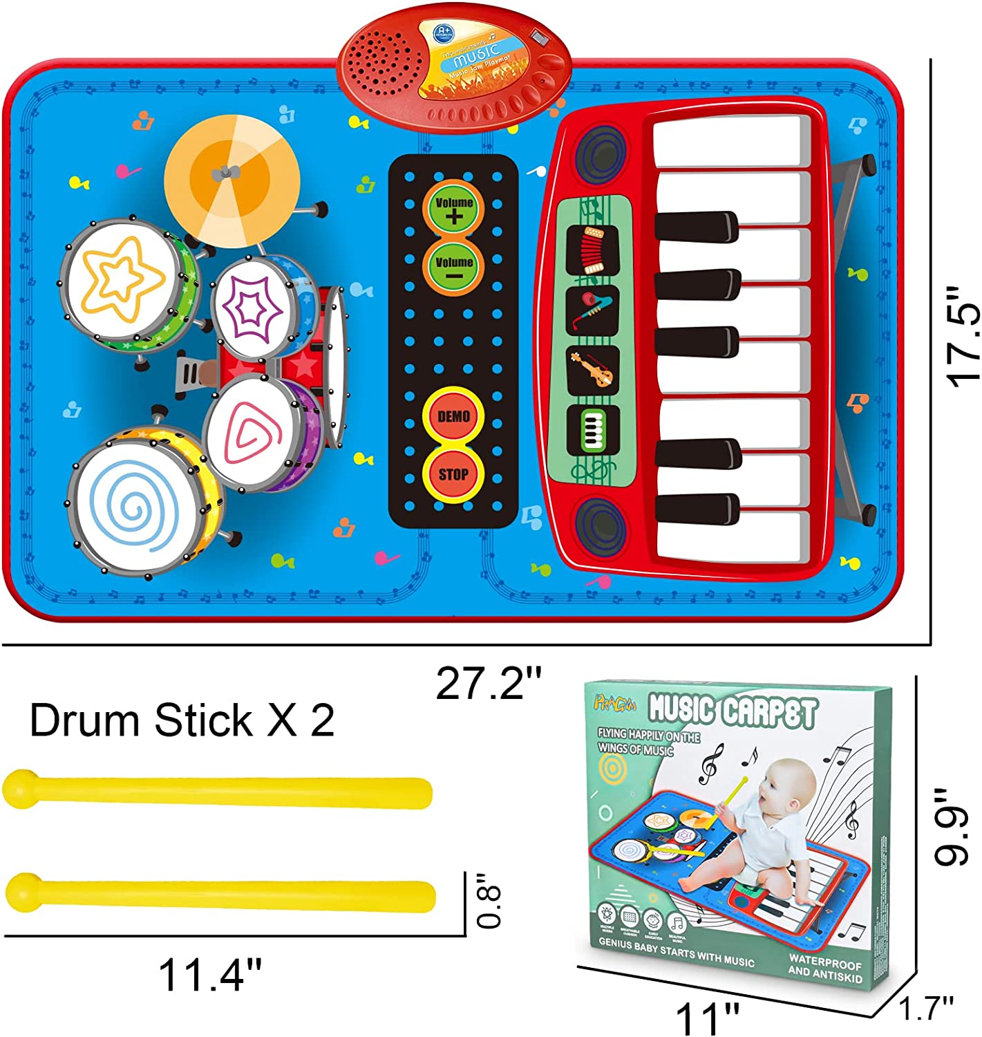 • Portable Musical Mat: Piano & electronic drum mat is foldable and easy to carry. You can enjoy music with your toddler outdoors or indoors. It's a great choice for your family trip. The baby toys for 1 year old boy are more convenient than a stand keyboard piano. And it is easy to wipe clean and anti skid waterproof.