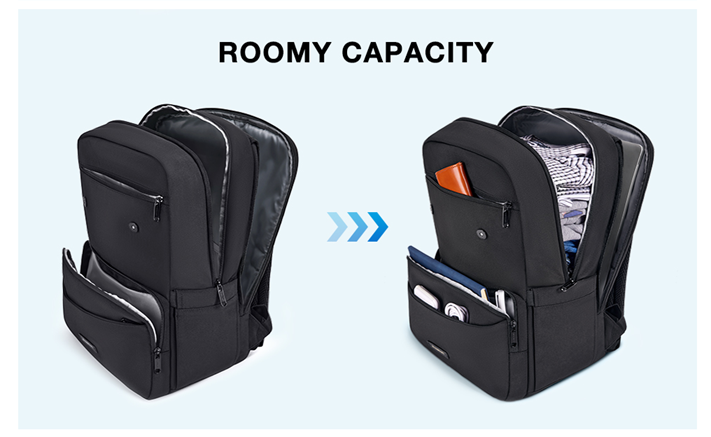Large Capacity - The laptop backpack, 12.2"L x 7.9"W x 17.7"H, 1.76lbs, provides roomy capacity to store your clothing, A4 folders, books, 17.3'' laptop, tablet, chargers, mouse, textbooks, water bottle, umbrella, and other daily accessories. The width of the main compartment can accommodate up to a 2-inch plus a 3-inch binder. The airline-approved carry-on can be fitted overhead and under-seat, it's ideal for a weekend trip, business trip, or travel