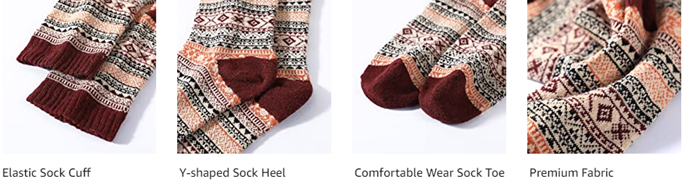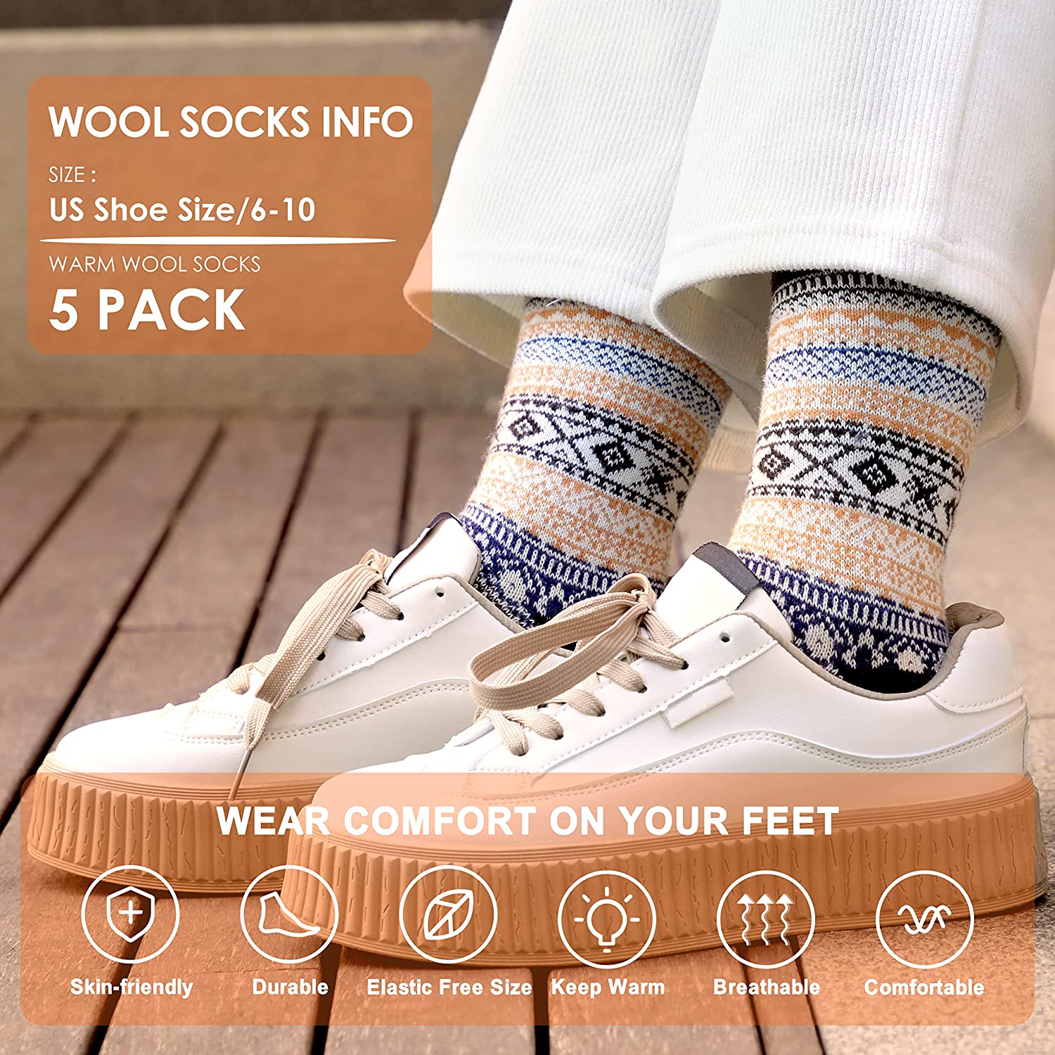 ?CHIC DESIGNS - With unique pattern, vintage trendy designs and easy-matching colors, our warm winter socks are befitting for different situations and coordinate with whatever you're wearing. These vintage wool socks are good matching for all your sneakers, boots, snow boots, and sport shoes. Brighten up those cold winter mornings with thick knit thermal wool socks and keep your feet warm.