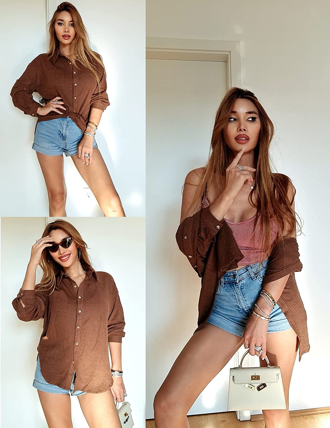 Match All Styles: Waffle shacket women button down shirts can be matched with short jeans, skinny leggings, hot pants, fashionable and vintage, button up shirt women is a must-have for any ladies,it goes well with everything.