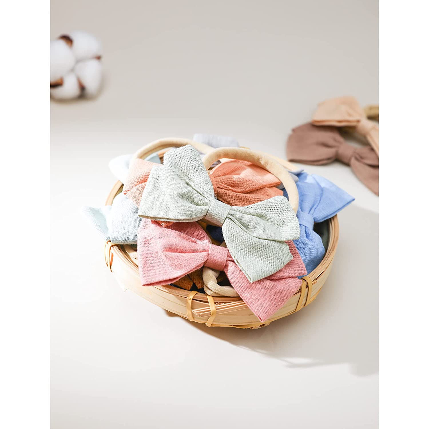 【100% Linen Fabric】: These baby bows on nylon headband are lovingly designed and handmade using natural linen fabrics.Jesries Each bow is handcrafted with care and professions. The material is gentle and soft which is safe to use on your baby’s head.