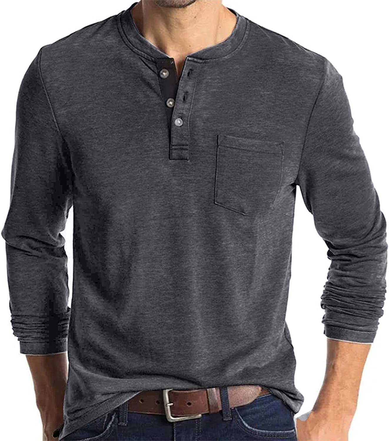 Lexiart Mens Fashion Henley Shirts Long Sleeve Button Cotton T-Shirt with Pocket