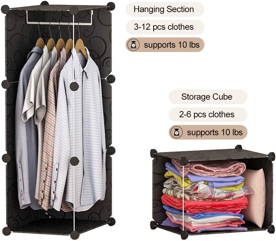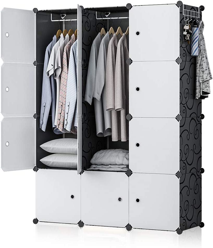 GEORGE&DANIS Portable Closet Wardrobe Cube Storage Cube Organizer Cube Shelf Armoire Bedroom Dresser (42x18x56 inches) 3x4 Tiers, Black