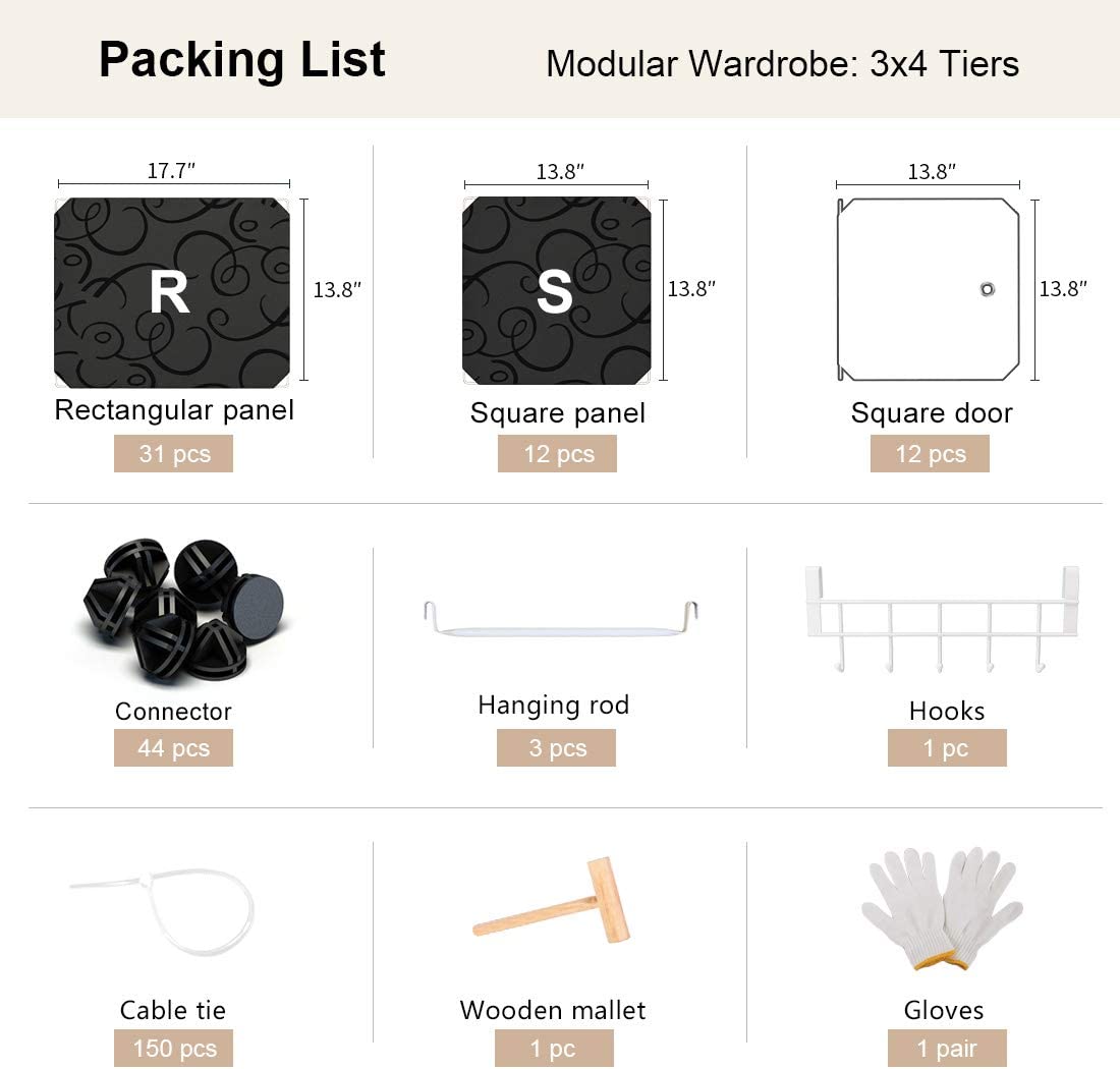 • ✔EASY INSTALLATION✔ - Simply connecting the panels together with connectors to form a closet wardrobe like a magical creation. Video instrution available on our Amazon store, which will help your easily understand the installation.