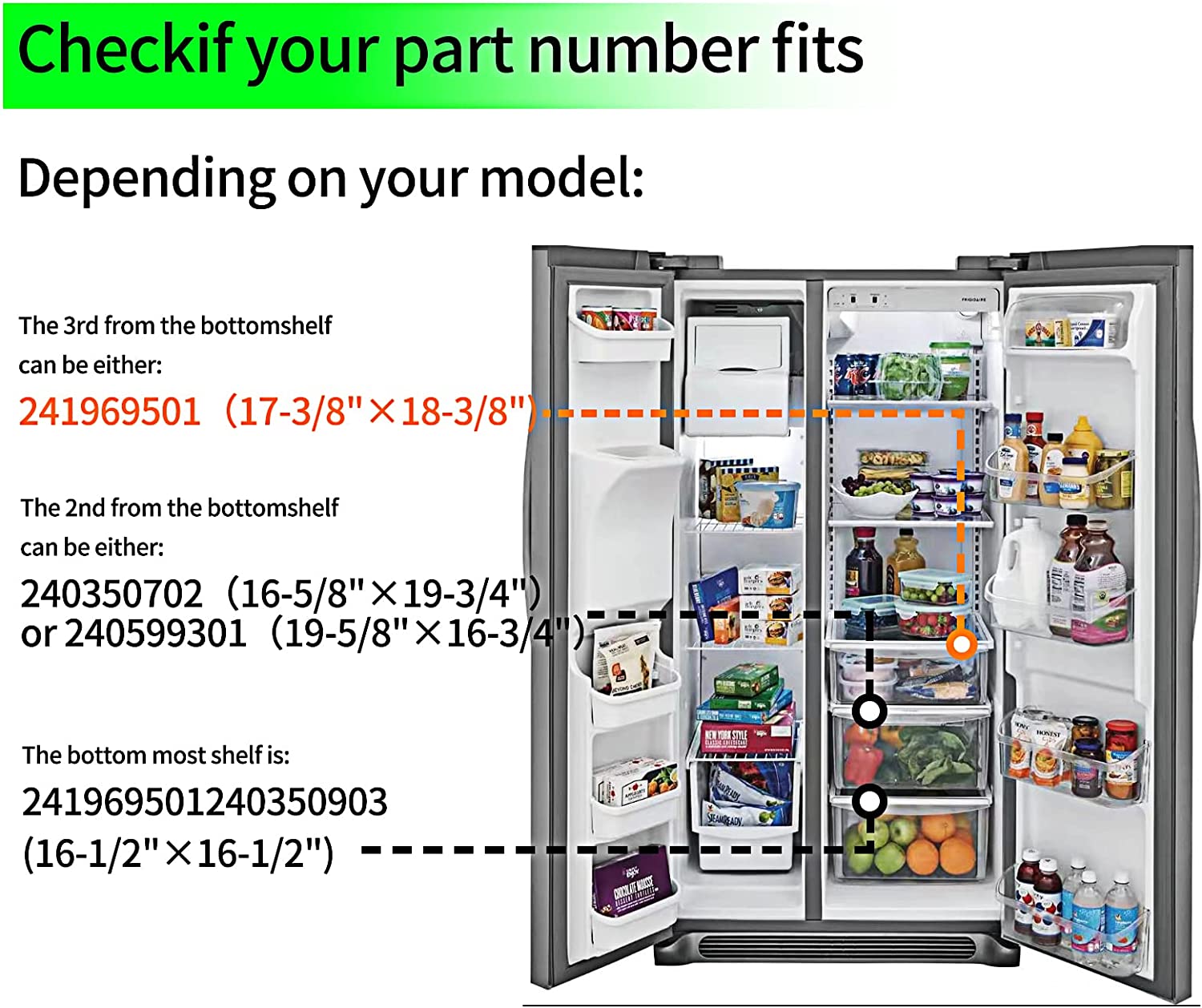 • ✔【Adaptation model】17-3/8" x 18-3/8" (glass not included )Replace 241969501,AP4433007 ,1512992,PS2363832 etc.for frigidaire refrigerator.