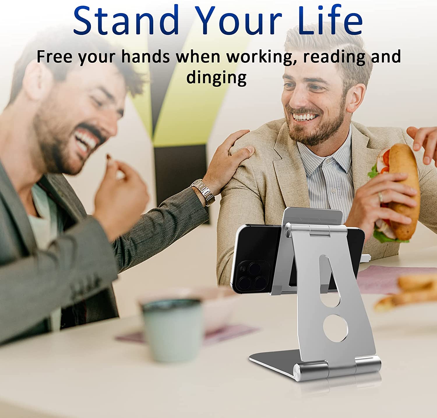 MKLCCP Phone Stand, Cell Phone Stand, Adjustable Tablet Stand for Desk, pgraded Longer Arms for Greater Stability Tablet Holder, iPhone Holder for Bigger Sized Phones and Tablets iPad, Silver