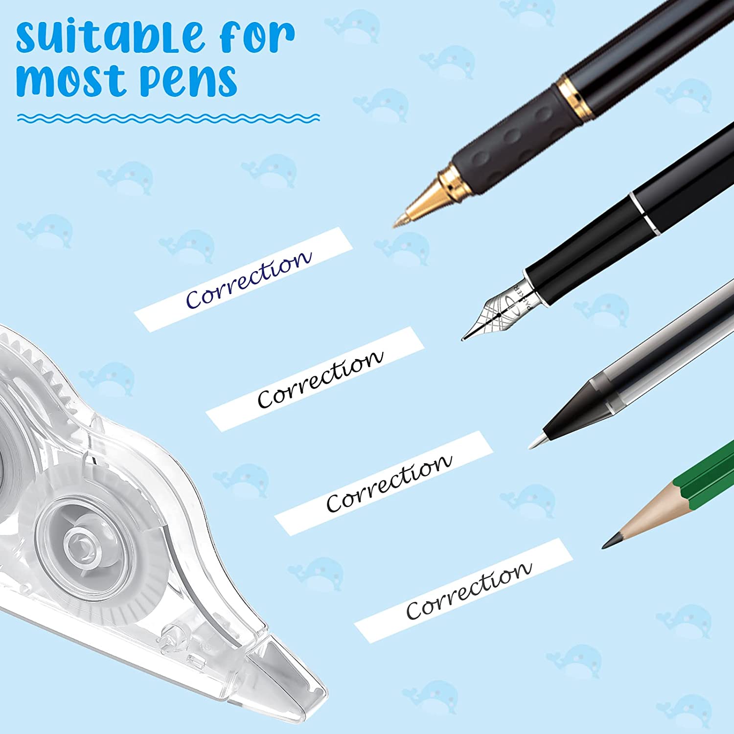 • Practical Tools: the cute correction tape is useful since it quickly covers the wrong contents, allowing you to redo without delay; Many writing instruments can be applied to write again, keeping your paper clean and not damaging your book or paper