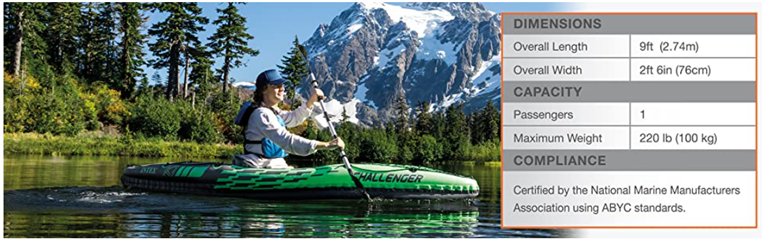 • Nimble, durable kayak is made of durable welded material with eye catching graphics for added safety on the lake or slow moving river