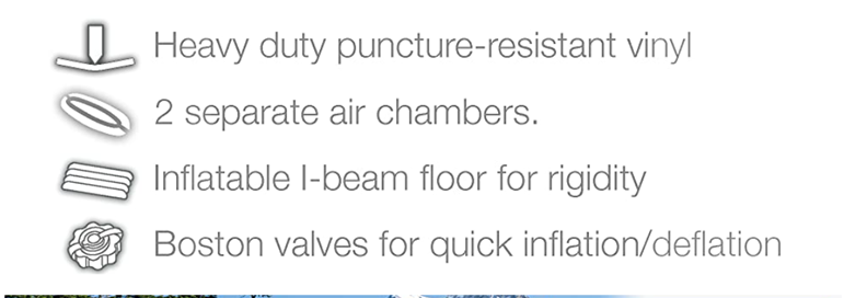 • Cockpit is designed for comfort and maximized space, and inflatable I beam floors add stability. Removable skeg provides exceptional directional movement