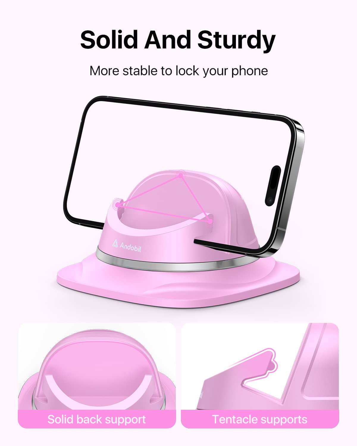 andobil 2023 Upgraded Dashboard Phone Holder Car, [ Ultra Steady,Never Slip ] Reusable Silicone Phone Mount for Car, 360°Rotatable,Compatible for iPhone, Samsung, Smartphone, GPS