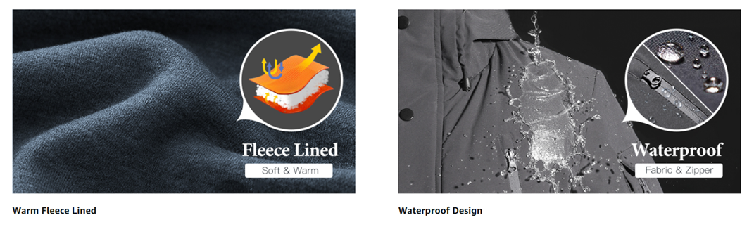 Warm & Durable winter jackets for men: 100% Polyester Fabric and Soft Fleece Lining jacket keeps you warm and comfortable in cold weather, The male winter coat shell fabric is durable and wear-resistant, Ideal for your autumn/ winter outwear.