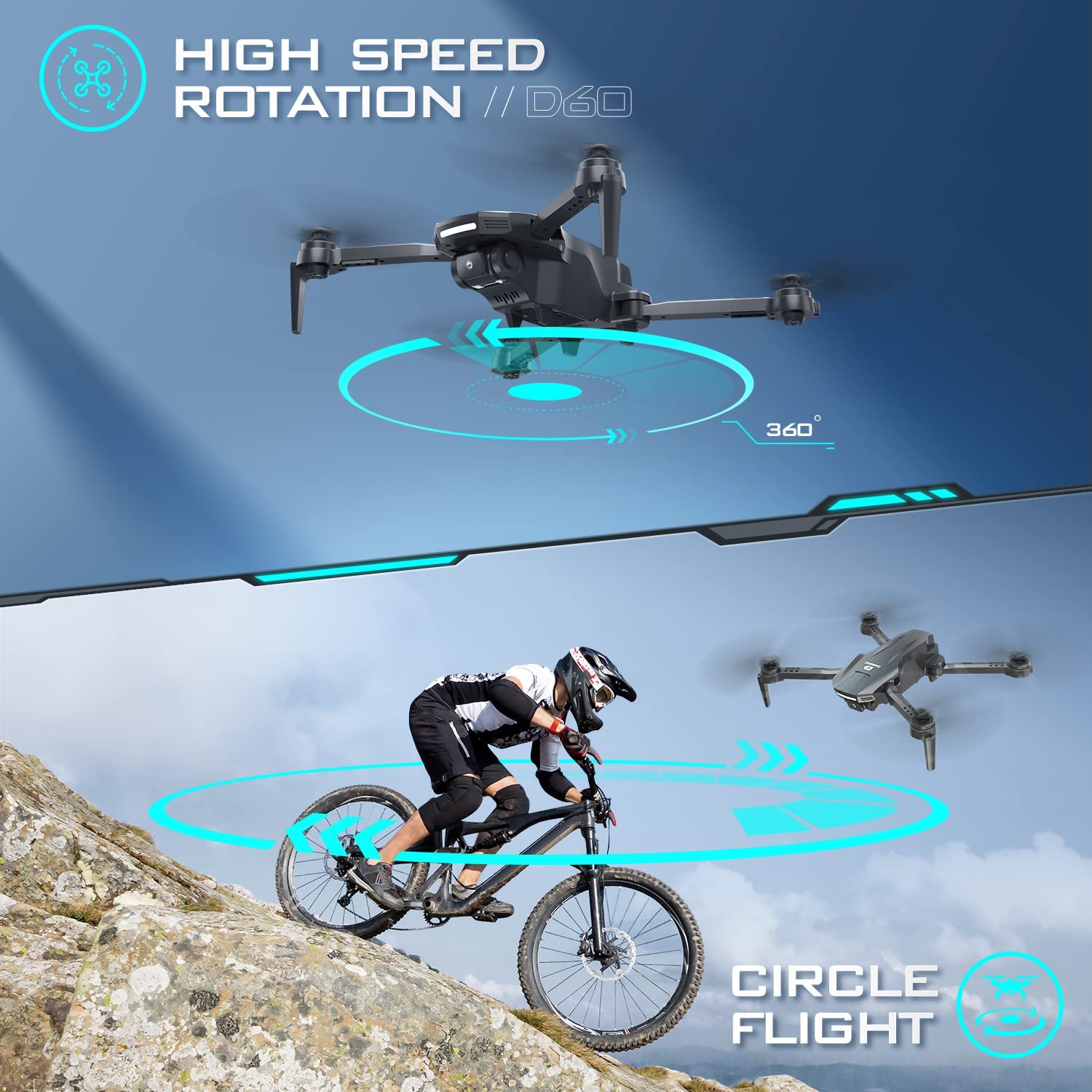 DEERC Drones with Camera for Adults Kids 1080P HD Video, D60 FPV Drone for Beginner with Long Battery Life, Gravity Sensor, Foldable Hobby RC Quadcopters & Multirotors, Toys Gifts for Boys Girls