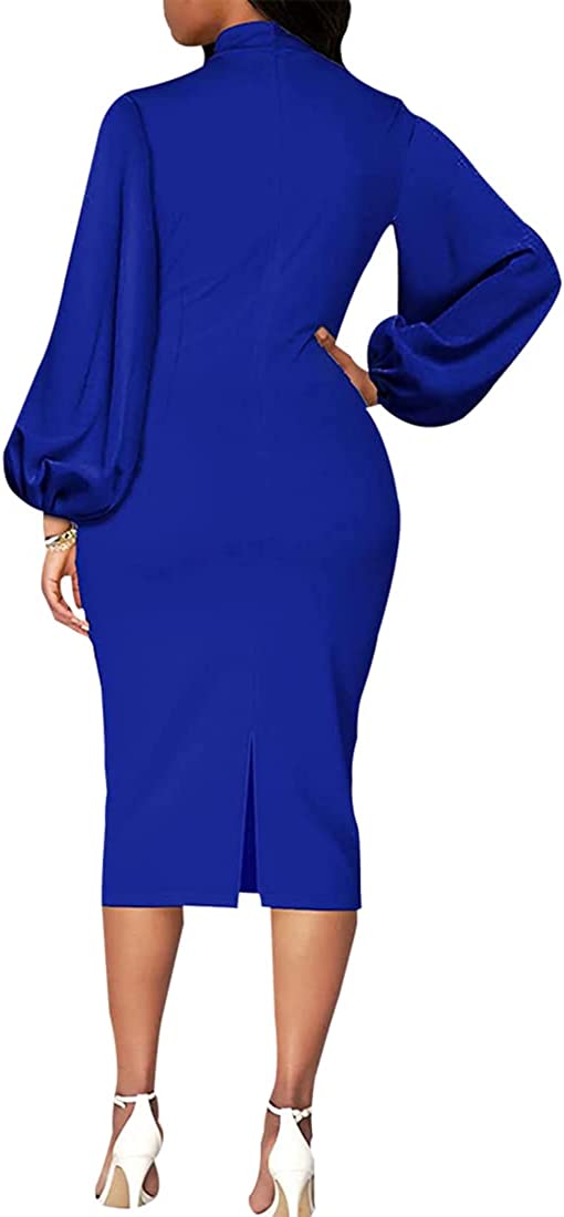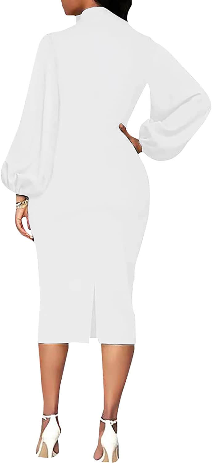 LalaLin Elegant Long Sleeve Dress for Women Solid Color Work Office Prom Bodycon Sexy Church Midi Dresses