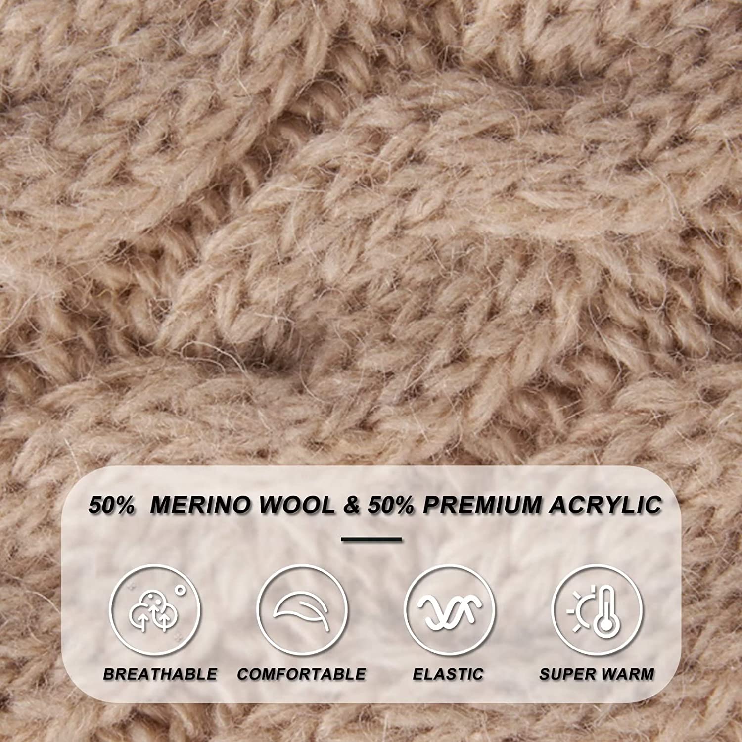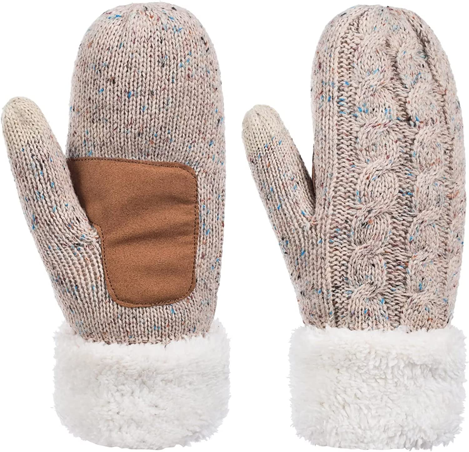 Mittens for Women Cold Weather, Womens Mittens Wool Knit Warm Thermal Fleece Lined, Winter Gloves with Touchscreen Fingers