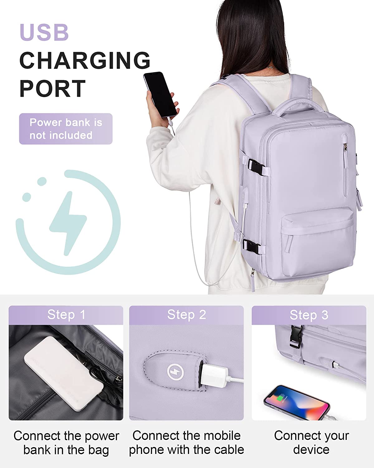 • Laptop backpack USB interface:With external built-in USB charger and internal built-in charging cable, this USB backpack provides you a more convenient way to charge your phone, ipad and laptop. Please note that this backpack does not include the power bank itself, the USB charging port only provides convenient charging.