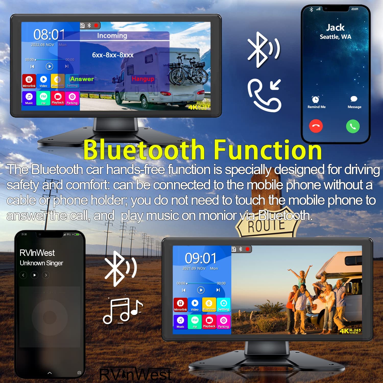 • 【Bluetooth Function】Connect your phone to the monitor via Bluetooth, you can play music and answer calls hands-free when you focus on driving.