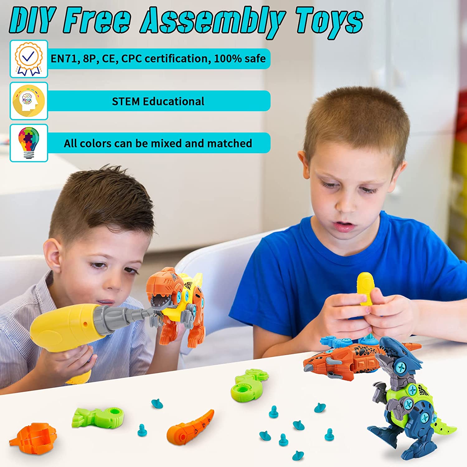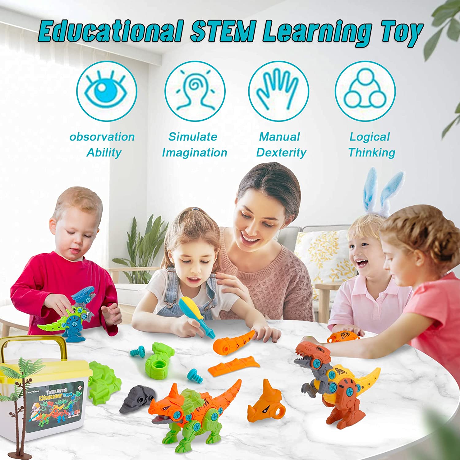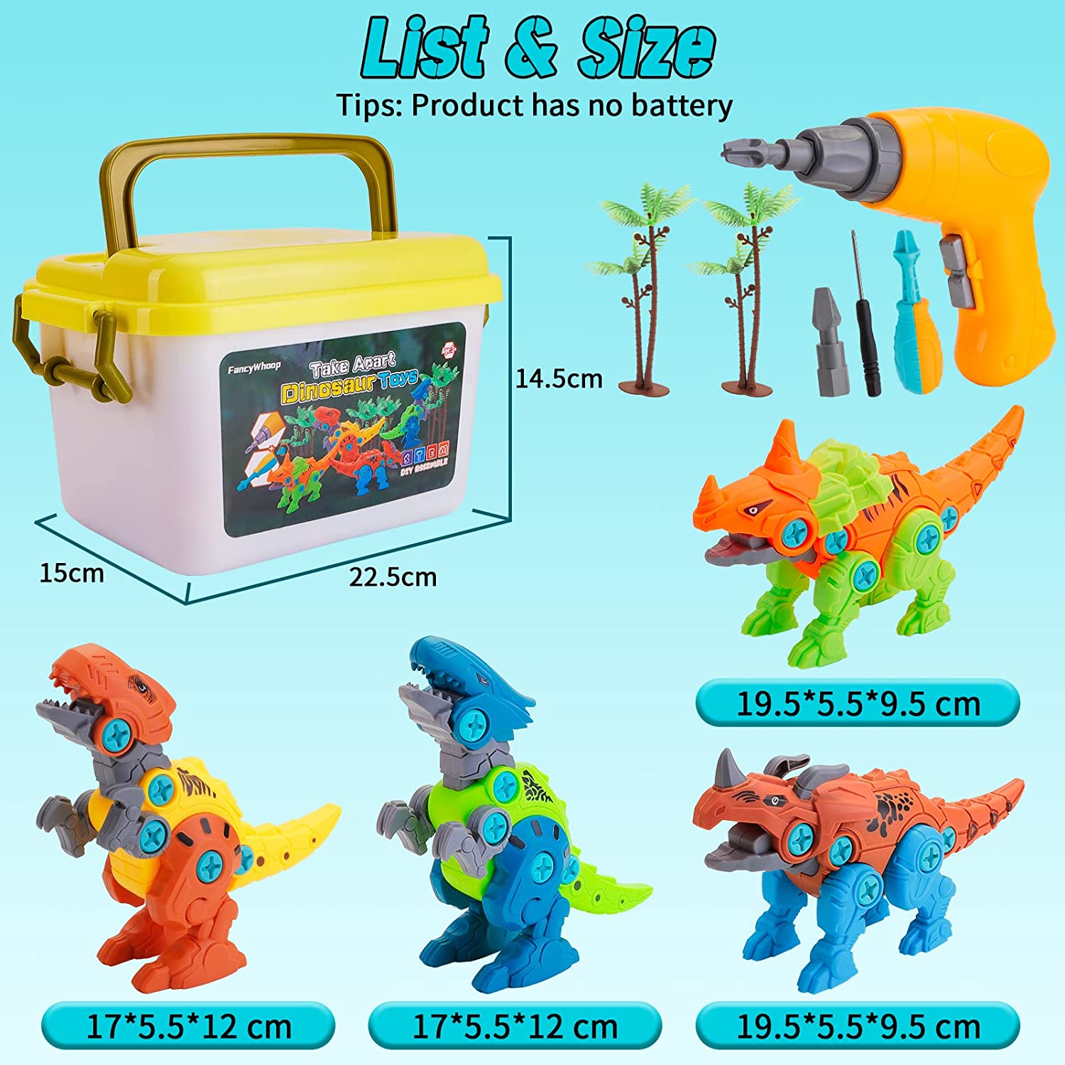 Dinosaur Take Apart Toys with Drill Storage Box - Stem Dinosaur Toys for Kids 3-5 5-7 Educational Construction Building Toys for 3, 4, 5, 6, 7 Year Old Boys, Ideal Xmas Birthday Gifts (4 Pack)