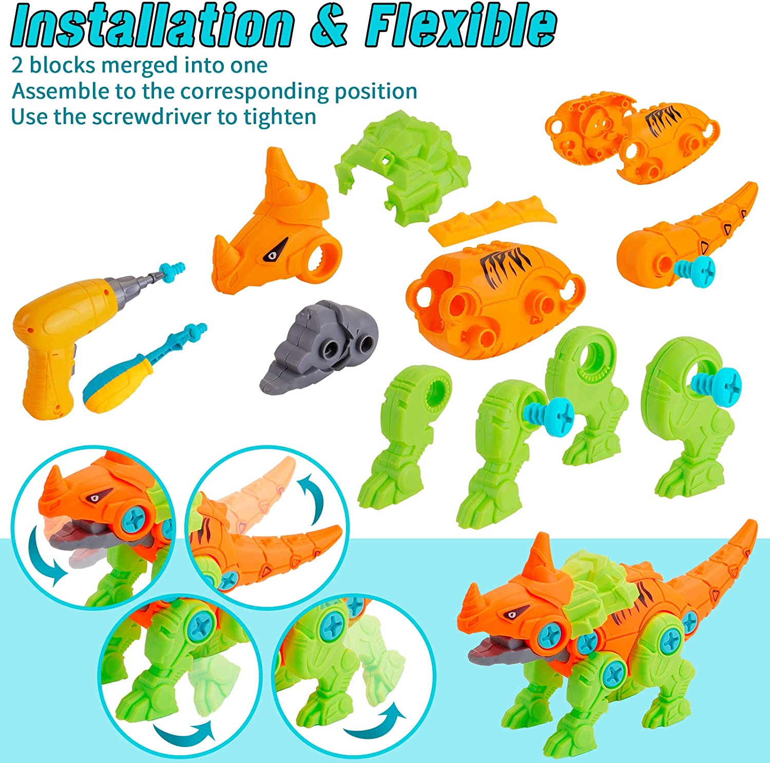 • ✅【Educational STEM Dinosaur Toys】Colorful designs made to young aged kids, attract them for hours of assembling or playing dinosaur games. The 4 dinosaur parts can be mixed and assembled according to kids' ideas and various funny dinosaur shapes can be made, which can develop their hand-eye coordination and stimulate the imagination of dinosaurs