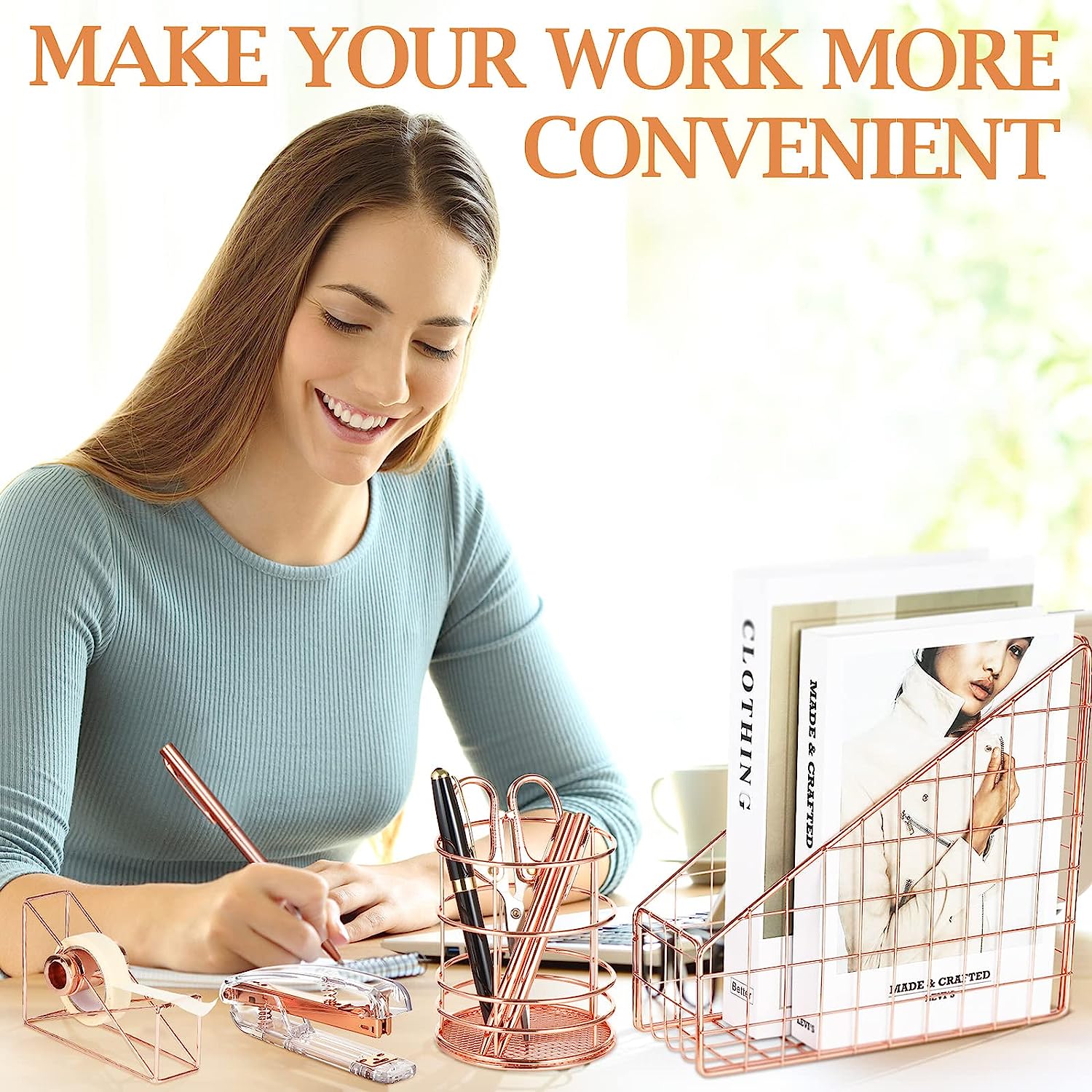 • Multiple Function: the rose gold office supplies set can be applied to store most of your stationery and office supplies, such as papers, letters, pencils, scissors, pens, staplers, allowing you to quickly find what you need