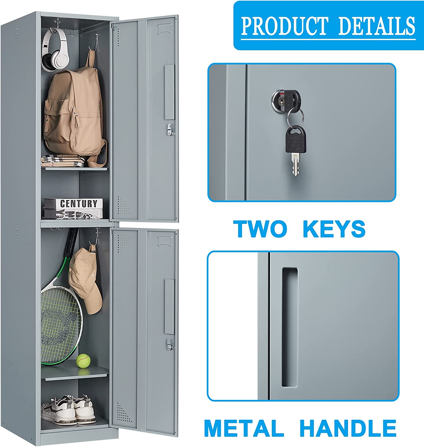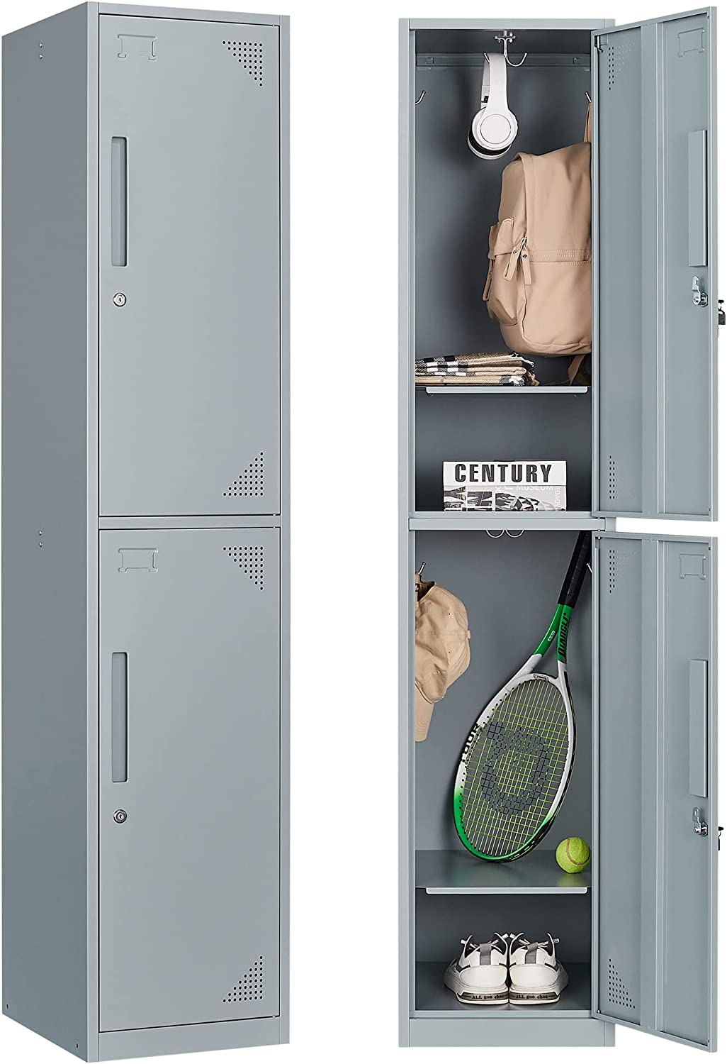 Letaya Metal Locker 2 Lockable Door,71" Tall Steel Storage Cabinet for School Office Gym Home Employees Staff Children Room(2 Door -Gray)