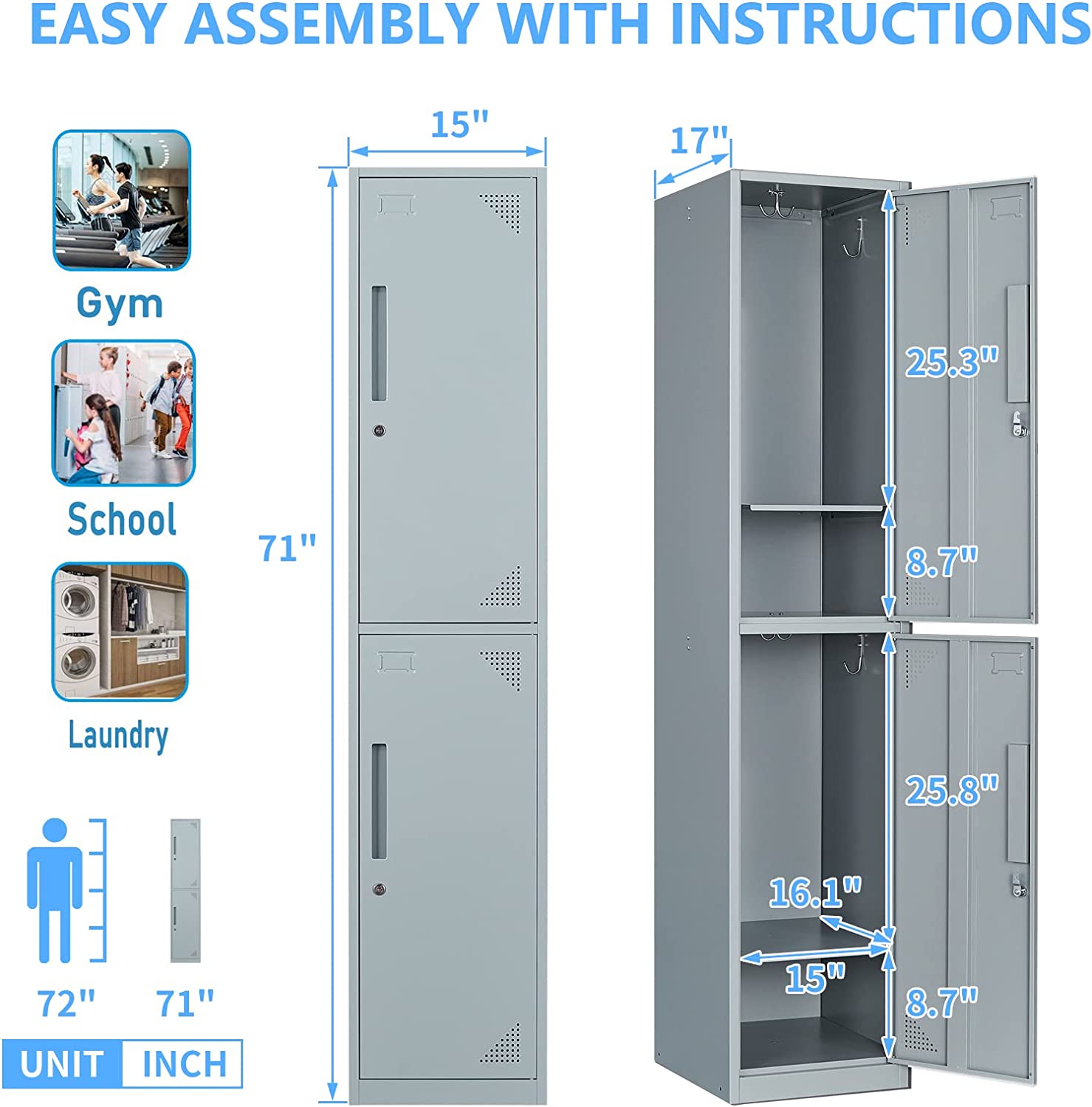 • 【Big capacity】Letaya metal lockers H71" x W15" x D17",2 door with lockable and 25.3 inches hight can hang clothes, hats, bags, etc.,17in deep can provide all the space needed to secure belongings for storage.