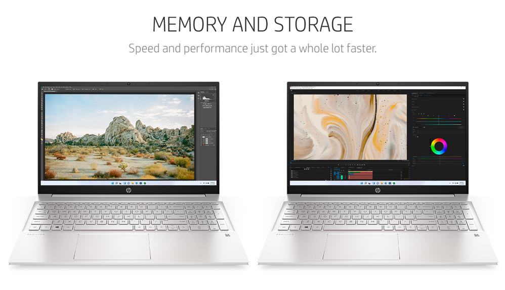 The HP Pavilion 15 Laptop has all the performance for mind-blowing entertainment you enjoy, but in a smaller, lightweight PC. The Full HD, IPS, micro-edge display combines with audio by BandO to give you robust, authentic theater-level entertainment (1). Intel Iris Xe Graphics (2) delivers the impressive performance needed for your creating, gaming, and entertainment while the 11th Generation Intel Core i7-1165G7 processor (3) gives you the instant responsiveness and best-in-class connectivity modern users crave. The HP Pavilion laptop’s 512 GB PCIe NVMe M.2 SSD storage outclasses traditional hard drives with 15 times the performance (4). Experience improved multitasking thanks to 16 GB of RAM. Work all day with up to 8 hours of battery life (5) and go from 0 to 50% charge in approximately 45 minutes with HP Fast Charge (6). Windows 10 Pro blends seamlessly and powerfully with this HP 15 Laptop for an optimized computing experience (7). Get more done with solid connection speeds from the powerful Wi-Fi 6 (2x2) (9) and Bluetooth 5.0 combo (10) and work comfortably with the familiar feel of a full-sized keyboard. Your HP laptop checks all the boxes with a 1-year limited hardware warranty, ENERGY STAR certification (12), EPEAT Silver registered (13), and a low halogen display (14). (1) Full High Definition (FHD) content is required to view FHD images. (2) Shared video memory (UMA) uses part of the total system memory for video performance. System memory dedicated to video performance is not available for other use by other programs. (3) Multi-core is designed to improve the performance of certain software products. Not all customers or software applications will necessarily benefit from the use of this technology. Performance and clock frequency will vary depending on the application workload and your hardware and software configurations. Intel’s numbering, branding, and/or naming is not a measurement of higher performance. Intel, Pentium, Intel Core, Celeron, Iris Xe, Intel logo, and the Intel Inside logo are trademarks of Intel Corporation in the U.S. and other countries. (4) Based on HP internal testing using CrystalDiskMark benchmarking software. Performance is sequentially faster (read-only) compared to traditional 5,400 rpm HDD. (5) Windows 10 MobileMark 18 battery life will vary depending on various factors including product model, configuration, loaded applications, features, use, wireless functionality, and power management settings. The maximum capacity of the battery will naturally decrease with time and usage. See bapco.com/products/mobilemark-2018/ for additional details. (6) Recharges your battery up to 50% within 45 minutes when the system is off (using “shut down” command). Recommended for use with the HP adapter provided with the notebook, not recommended with a smaller capacity battery charger. After charging has reached 50% capacity, charging speed will return to normal speed. Charging time may vary plus/-10% due to System tolerance. (7) Not all features are available in all editions or versions of Windows. Systems may require upgraded and/or separately purchased hardware, drivers, software, or BIOS update to take full advantage of Windows functionality. Windows 10 is automatically updated, which is always enabled. ISP fees may apply and additional requirements may apply over time for updates. See microsoft.com (8) Upgrade rollout plan is being finalized and is scheduled to begin late in 2021 and continue into 2022. Specific timing will vary by device. Certain features require specific hardware, see http://www.Microsoft.com/windows/windows-11-specifications (9) Wireless access point and internet service required and sold separately. Availability of public wireless access points limited. Wi-Fi 6 (802.11ax) is backwards compatible with prior 802.11 specs. The specifications for Wi-Fi 6 are draft and are not final. If the final specifications differ from the draft specifications, it may affect the ability of the notebook to communicate with other Wi-Fi 6 devices. Only available in countries where 802.11ax is supported. (10) Bluetooth is a trademark owned by its proprietor and used by Hewlett-Packard Company under license. (11) Based on Wi-Fi 5 80MHz and Wi-Fi 6 160MHz minimum requirements when transferring files between two devices connected to the same router. Requires a wireless router, sold separately, that supports 802.11ax (Wi-Fi 6). Only available in countries where 802.11ax is supported. (12) ENERGY STAR and the ENERGY STAR mark are registered trademarks owned by the U.S. Environmental Protection Agency. (13) Based on U.S. EPEAT registration according to IEEE 1680.1-2018 EPEAT. EPEAT status varies by country. (14) External power supplies, power cords, cables, and peripherals are not Low Halogen. Service parts obtained after purchase may not be Low Halogen.