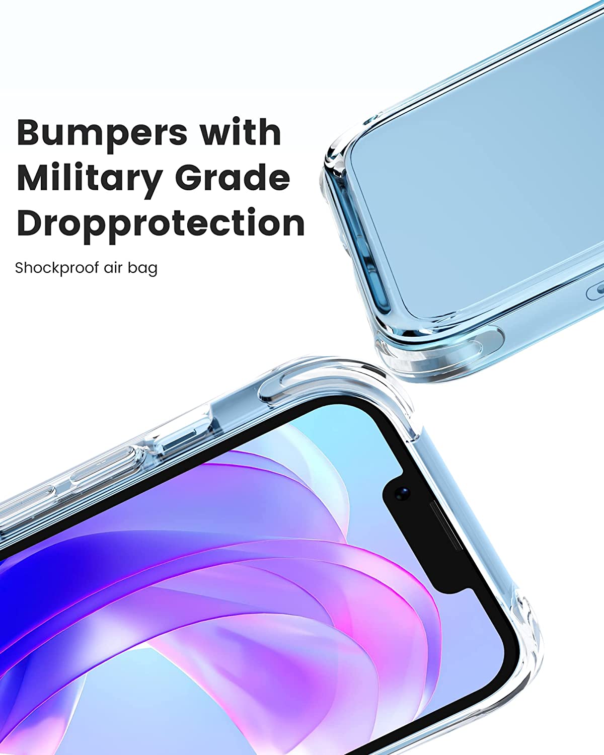 • Military Drop Protection: The thickness of this case acts as a bumper for iPhone 14 Plus and is 3.3mm. The 4 corners of the case have built-in airbags designed to provide solid protection for the iPhone 14 Plus.
