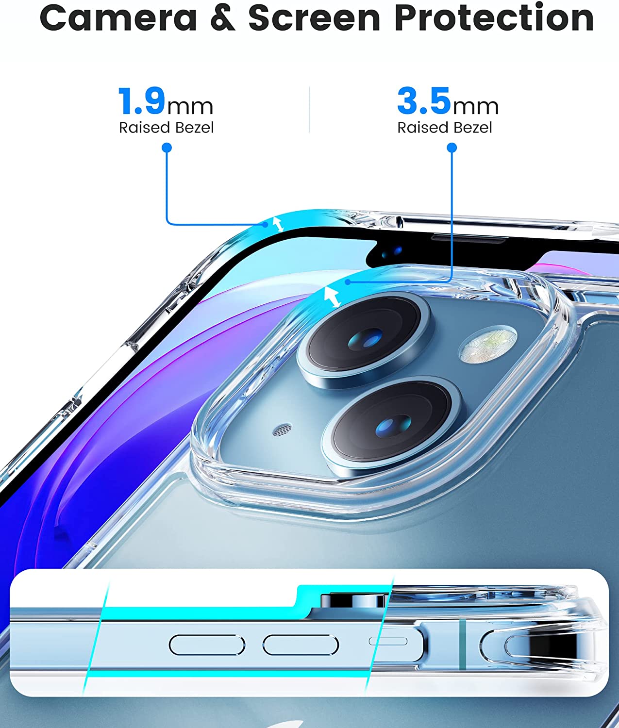 • Slim Design & Comfort Grip: The case for iPhone 14 Plus is made of clear polycarbonate and flexible materials. Its slim and slides in and out of pockets easily while the edges give you a firm grip while calling, texting, gaming, and taking selfies.