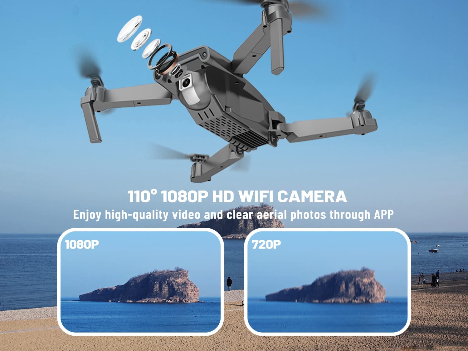 NEHEME NH525 Foldable Drones with 1080P HD Camera for Adults, RC Quadcopter WiFi FPV Live Video, Altitude Hold, Headless Mode, One Key Take Off for Kids or Beginners with 2 Batteries