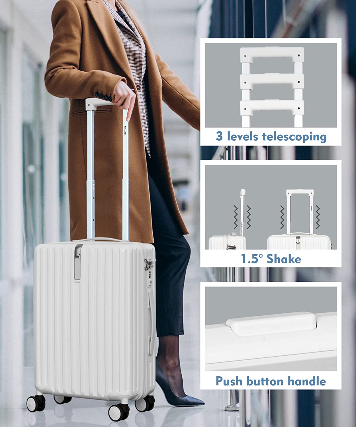 Rolling luggage with 4 double spinner wheels wheels means a smooth ride on any surface.
