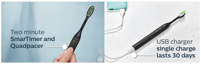 Philips One by Sonicare is an ultra-portable electric toothbrush that keeps your smile bright. Always be ready to touch up your smile, no matter where the day takes you. VALUE ADDED. Brush Head Bundle includes 3 total brush heads. Subscribe & Save on genuine Philips One brush head replacements and save up to 15%.