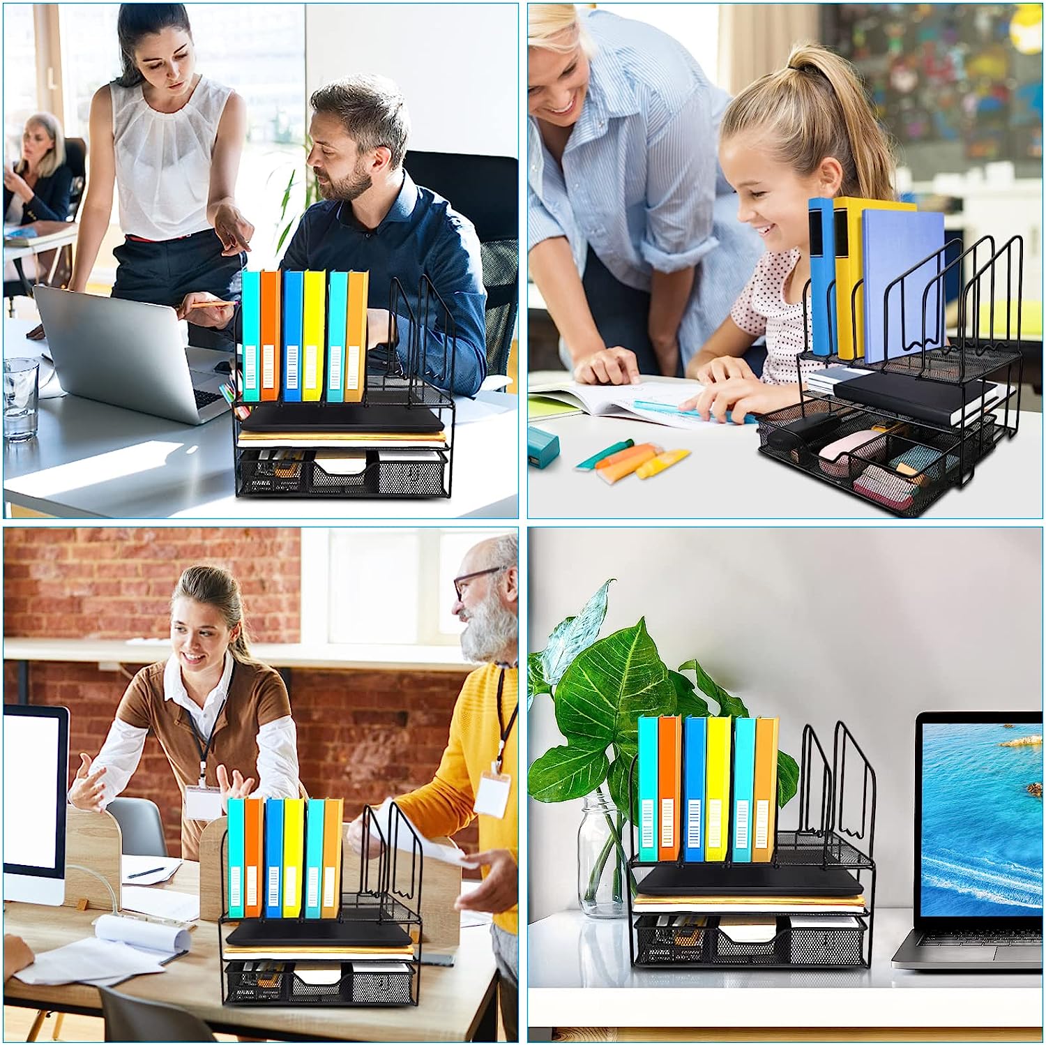 • File Folder Racks & Holders: This vertical and horizontal Desktop Rack File Organizer is made of durable metal, with a unique grid design, and is equipped with drawers and letter sorters, making items orderly and easily accessible.