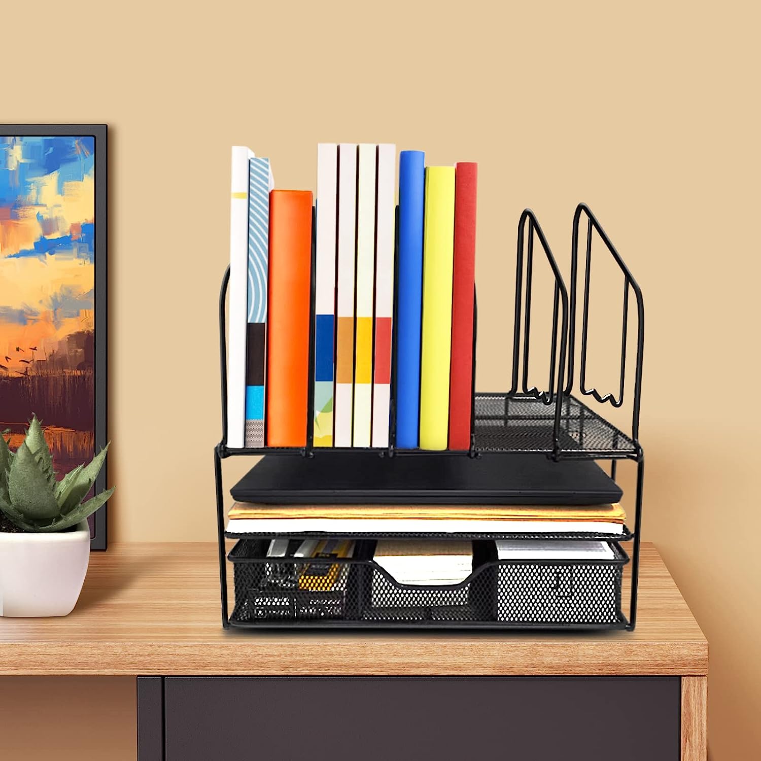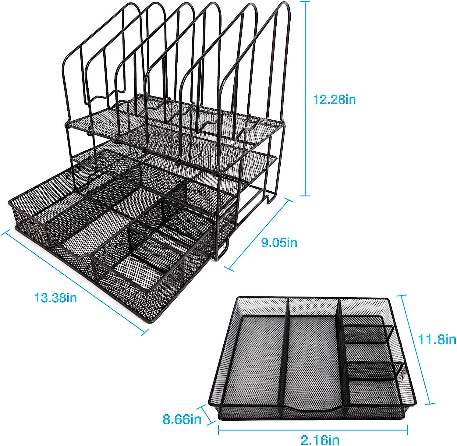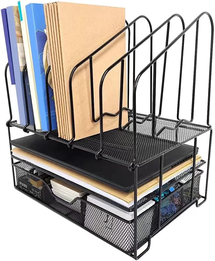 Separate your files papers mails bills and books on top 5 upright sections and the bottom flat tray with desk accessories drawer organizer, and use it separately
