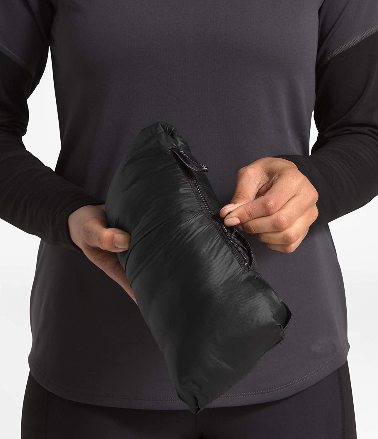 PACKABLE DESIGN. This jacket stows in the hand pocket, creating its own pouch and making it great for keeping in your backpack or throwing in your luggage. An internal, secure-zip chest pocket and covered zip hand pockets store your phone and wallet.