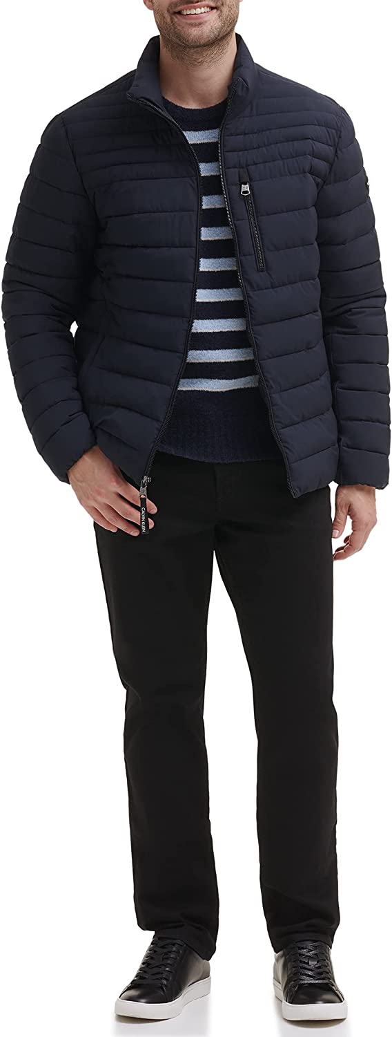 Travel-friendly: Easily pack and store this puffer jacket men can’t get enough of; lightweight fabric and interior insulation allow the jacket to fit where you need it