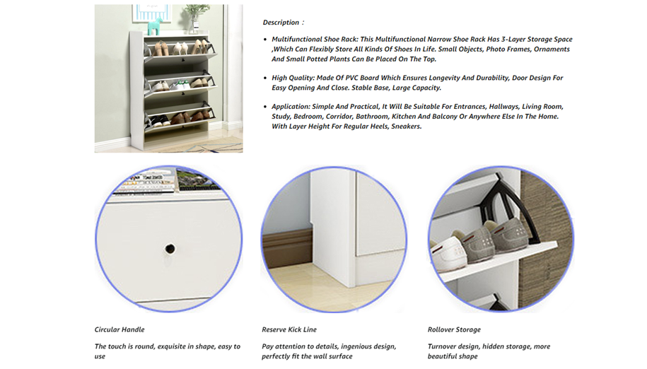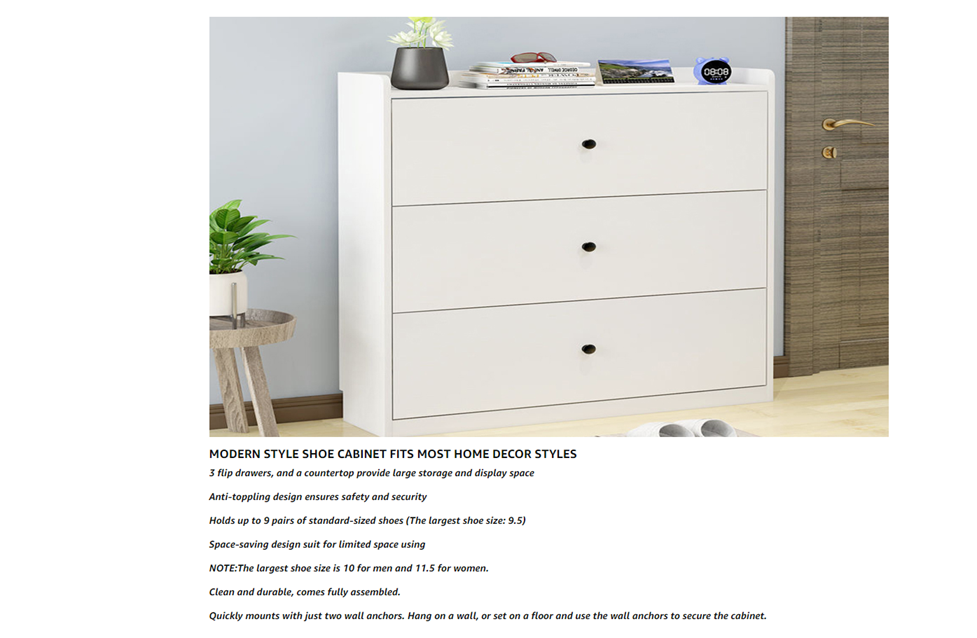The shoe cabinet is an indispensable piece of furniture for every family, but not every shoe rack can meet your needs. This tipping shoe cabinet from is specially built for you. 3-tier flip drawers provide a large storage capacity while avoiding unpleasant smells, which greatly improves the cleanliness of your home. You can store and display your keys, photo albums and plants in countertop.