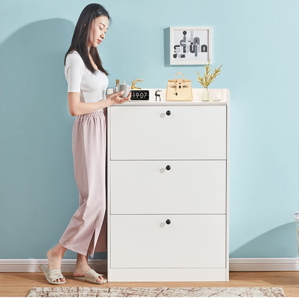 • OIHYA Tipping Shoe Cabinet, 3 Drawer Shoe Rack Organizer Cabinet Freestanding Shoe Rack Cabinet for Entrances Hallways Corridor Saving Space