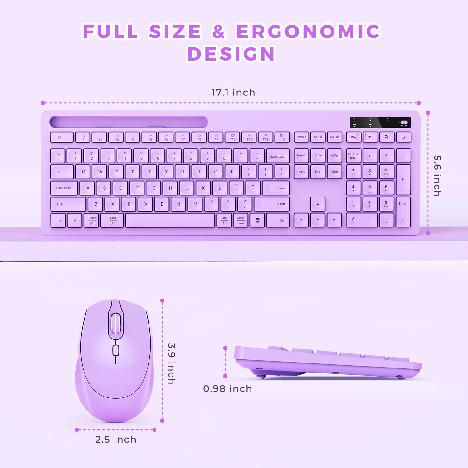 - Productive and Aesthetic -- Improve your computing experience throughout the day with the responsive and well-shaped keys of the purple wireless keyboard. Refresh your workspace with the modern contours and sleek lines in a romantic peach taro purple color, the cute keyboard and mouse will be a fantastic ornament to complement a lovely and contemporary desktop!