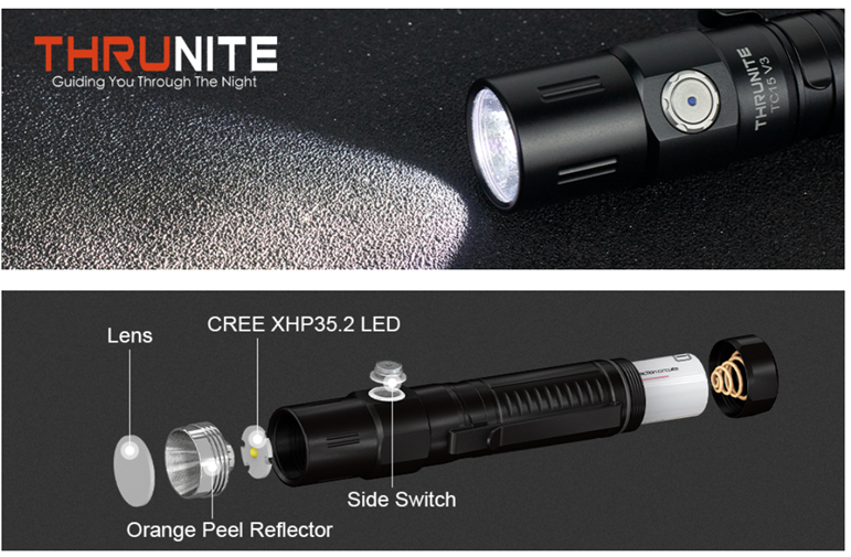 The excellent ThruNite TC15 V3 provides you with a wonderful experience. This handheld flashlight adopts the newest CREE XPH35.2 LED and ThruNite IMR battery. Not only a handheld LED flashlight, but also an EDC flashlight which can be used indoors & outdoors, such as hiking, camping, security or in an emergency.